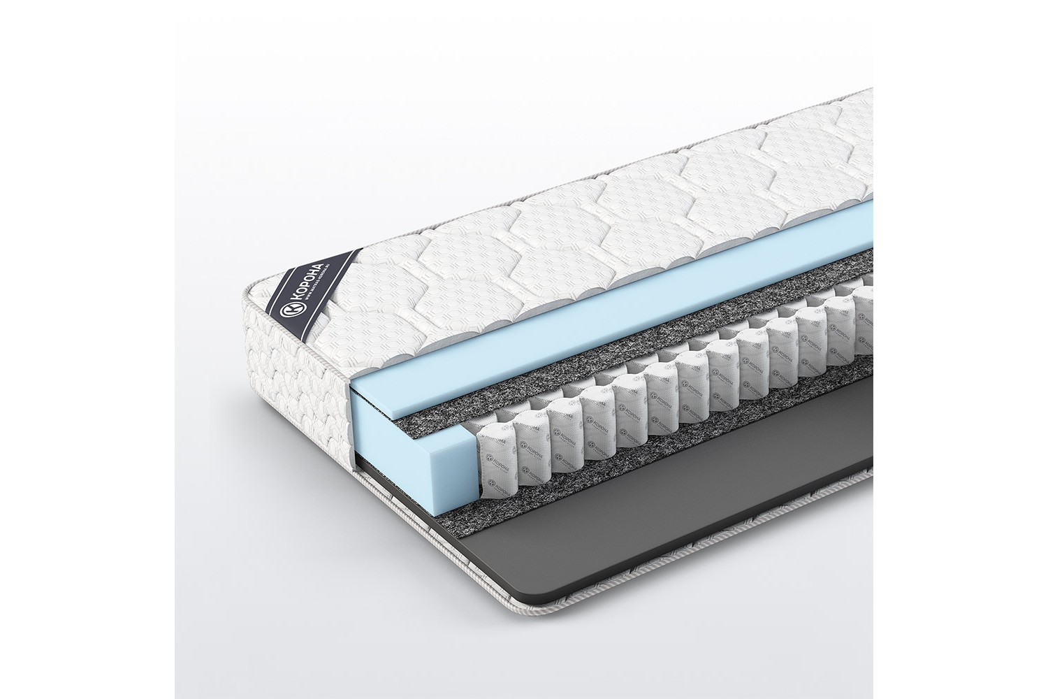 Практичная модель с разной жесткостью сторон по доступной цене. Применение пенополиуретана стандартной марки ST 2236 с одной стороны матраса позволяет получить мягкое и комфортное спальное место, которое подстраивается под контуры тела пользователя. Угольная пена высокой плотности с другой стороны делает ее более жесткой и упругой, лучше распределяет весовую нагрузку. Использование термовойлока продлевает срок службы наполнителей.