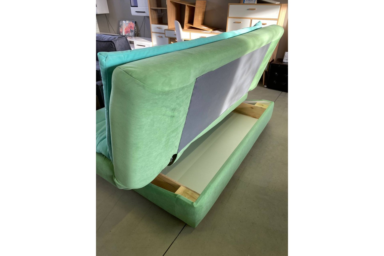 Дополнительным преимуществом является наличие ящика для белья, где можно хранить постельные принадлежности или другие вещи. Это помогает поддерживать порядок в комнате и экономит пространство.