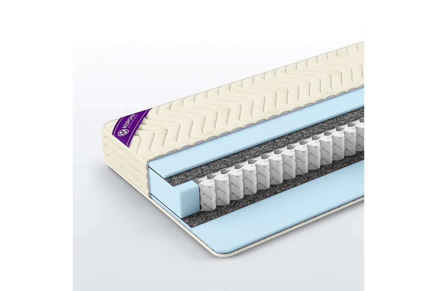 Самая доступная ортопедическая модель на основе блока независимых пружин. 500 пружин на одно спальное место обеспечивают необходимую поддержку тела и правильное положение позвоночника во время сна. Матрас имеет низкую жесткость и не предназначен для большой весовой нагрузки. Подойдет для людей с весом около 80-90 кг. Предусмотрены чехлы на выбор: экономичный жаккард «Трикот» и прочный хлопковый жаккард «Aries».