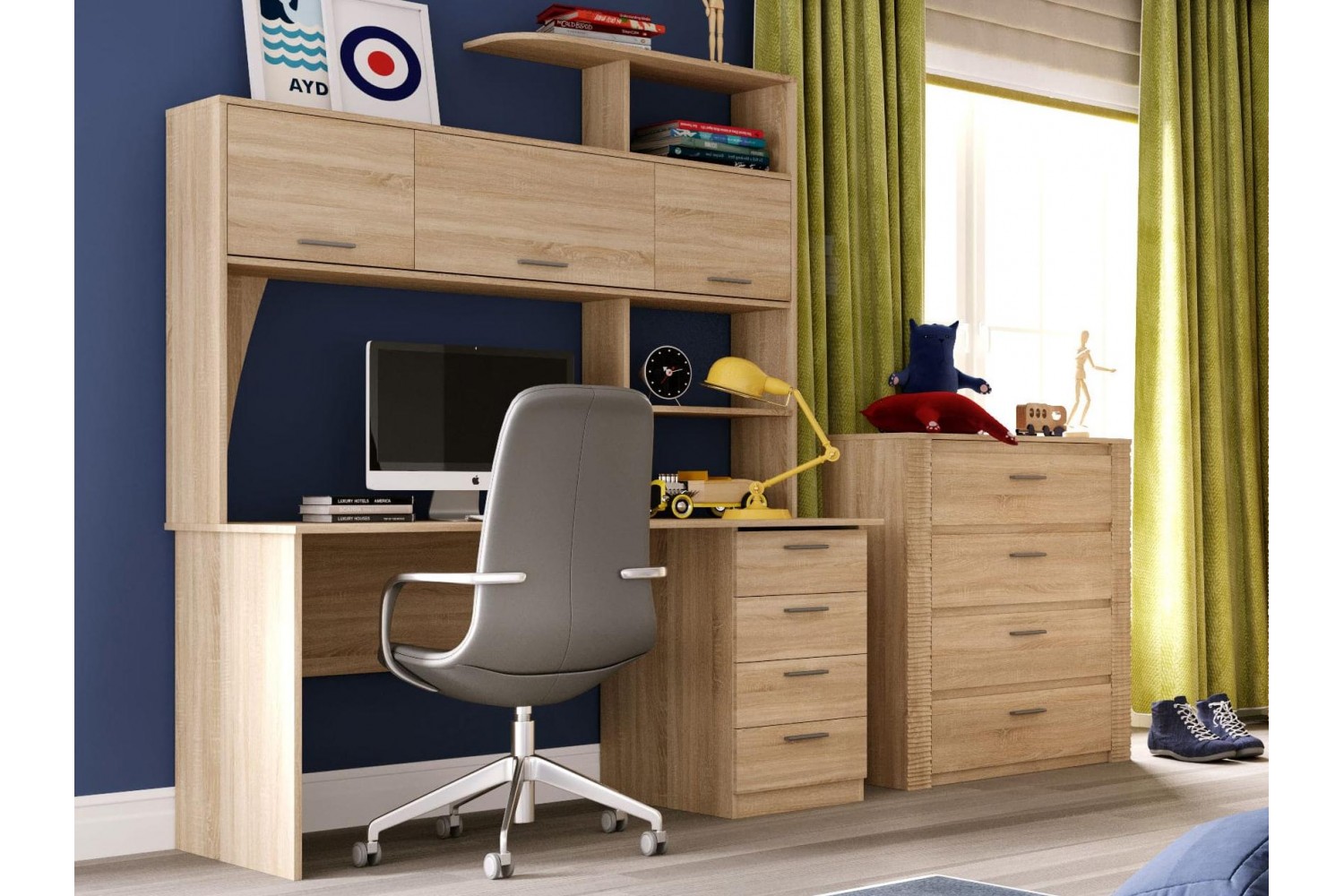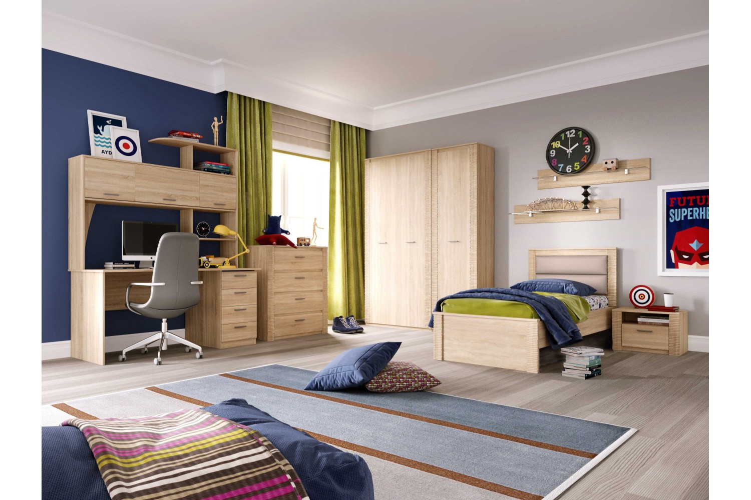 Дизайн в цвете Дуб Сонома придаёт комнате светлый и современный вид, а лаконичные линии и стильные элементы делают гарнитур универсальным для любого интерьера. Создайте идеальное пространство для учебы и отдыха с гарнитуром "Элана"!