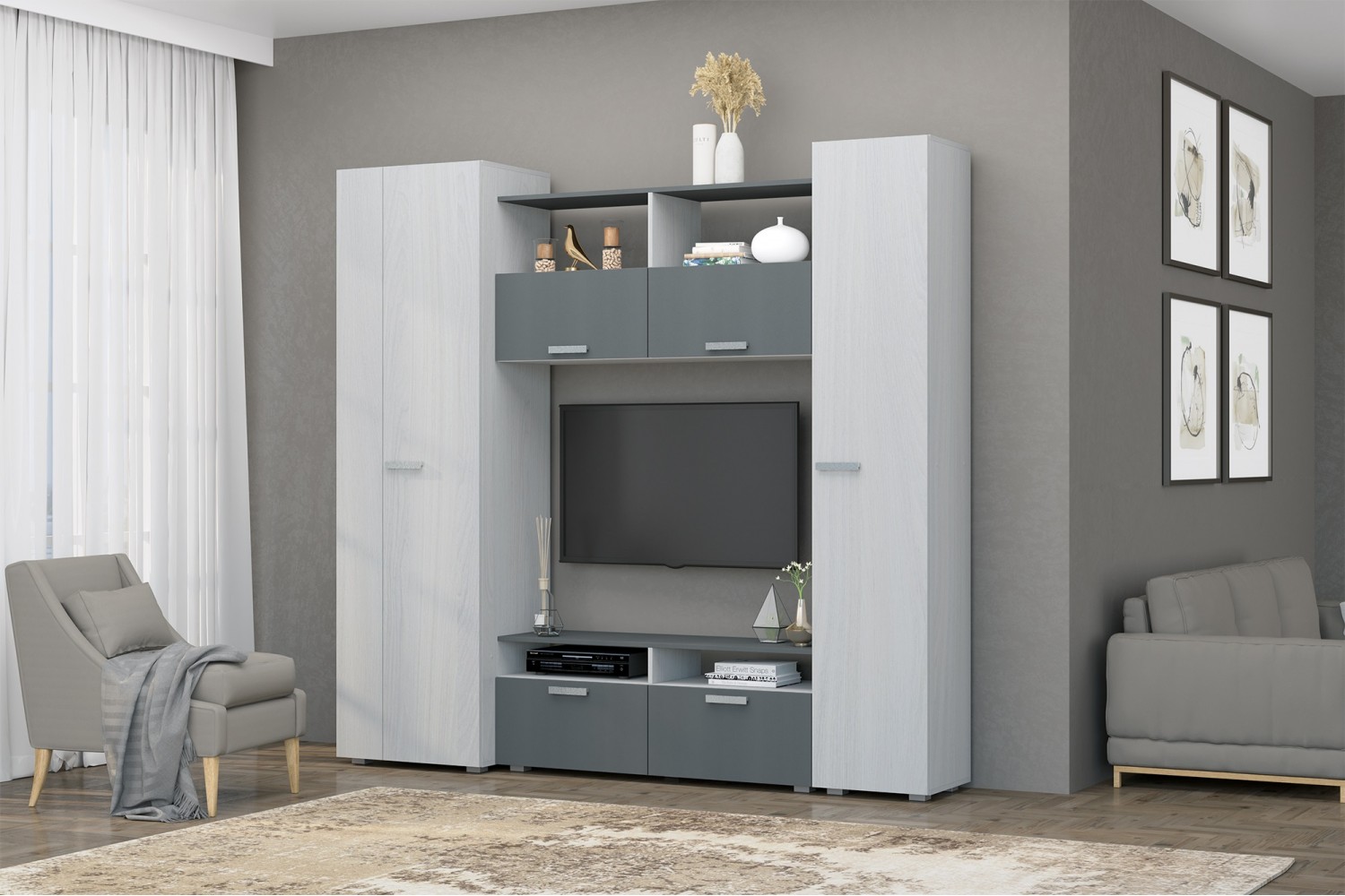 Эта гостиная не только функциональна, но и эстетически привлекательна, благодаря сочетанию светлого анкора и графитового цвета. Создайте уют и комфорт в вашем доме с мебелью, которая прослужит вам долгие годы.