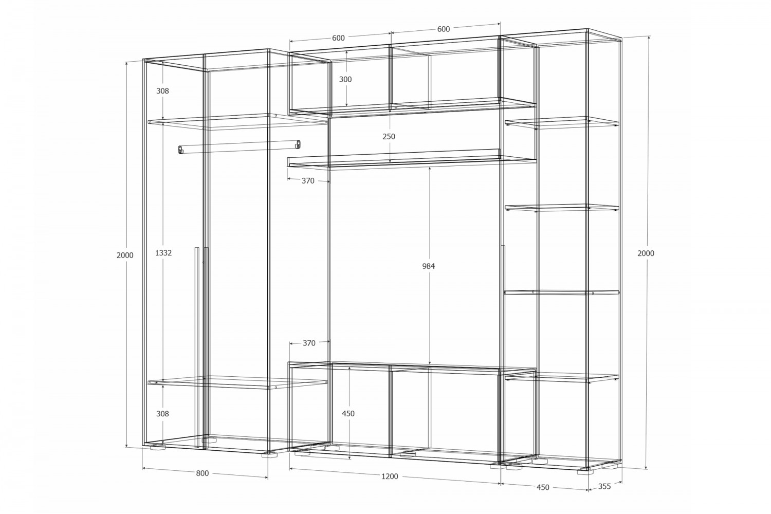Размеры: 2450 мм в ширину, 530 мм в глубину и 2000 мм в высоту позволяют разместить её в различных интерьере, сохраняя при этом максимальную функциональность. Объём составляет 0.25 м³, а вес — 147 кг, что гарантирует надёжность и долговечность конструкции.