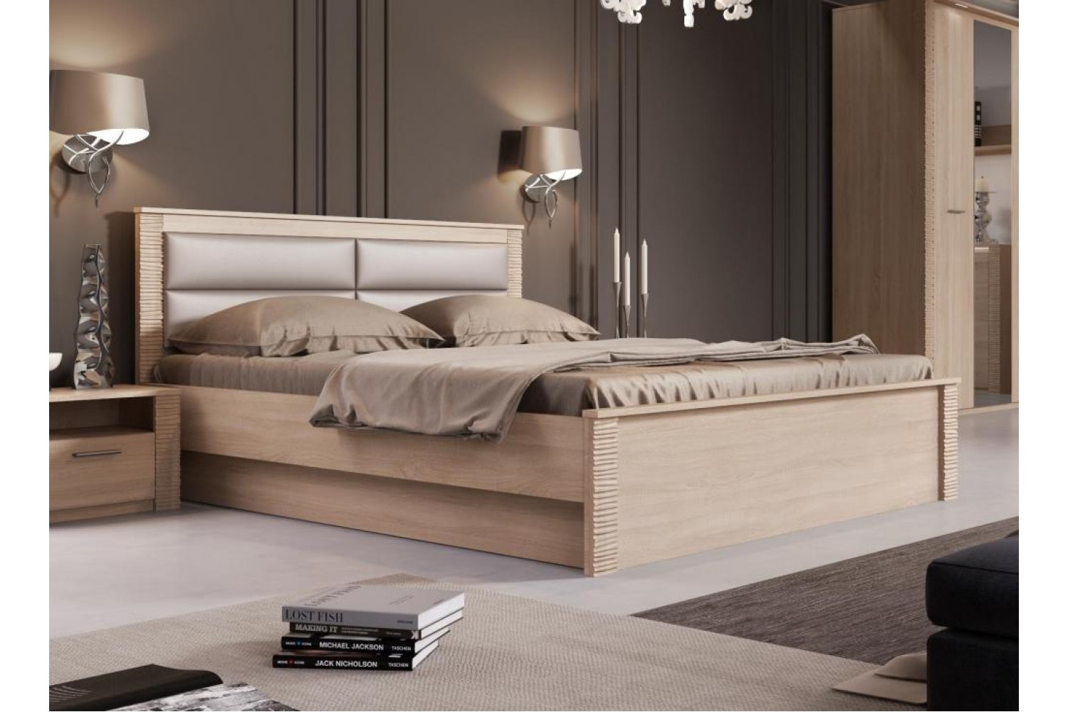 Исполнение Кровать оснащена мягким изголовьем, состоящим из двух элементов обтянутых кожзамом