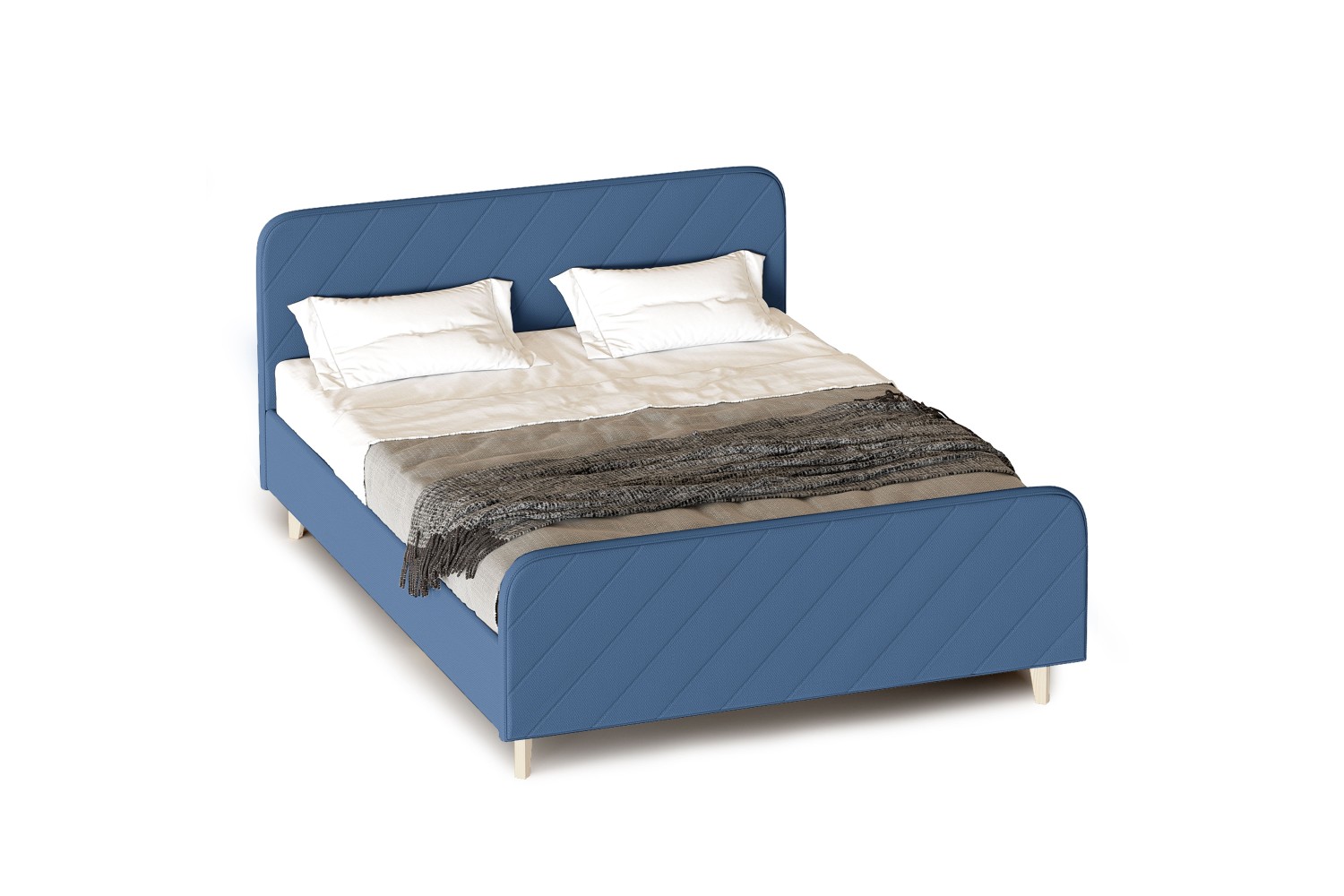 Декоративная отстрочка чехла добавляет изысканности и элегантности, подчеркивая современный дизайн. Глубина кровати составляет 2140 мм, что обеспечивает достаточное пространство для отдыха.