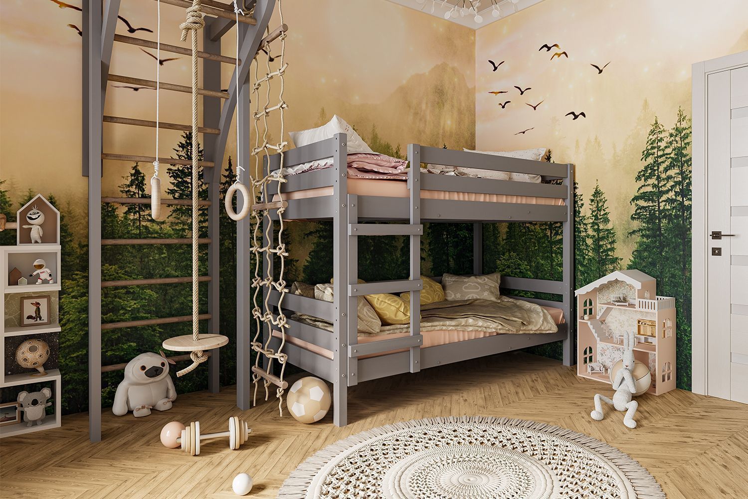 Размеры: ширина 990 мм, высота 1750 мм, длина 2100 мм — позволяют комфортно разместить два спальных места. Кровать подходит для детей всех возрастов и станет уютным уголком для отдыха и игр. Гарантия 18 месяцев подтверждает высокое качество и надежность. Добавьте стиль и функциональность в детскую комнату с кроватью «Джуниор»!