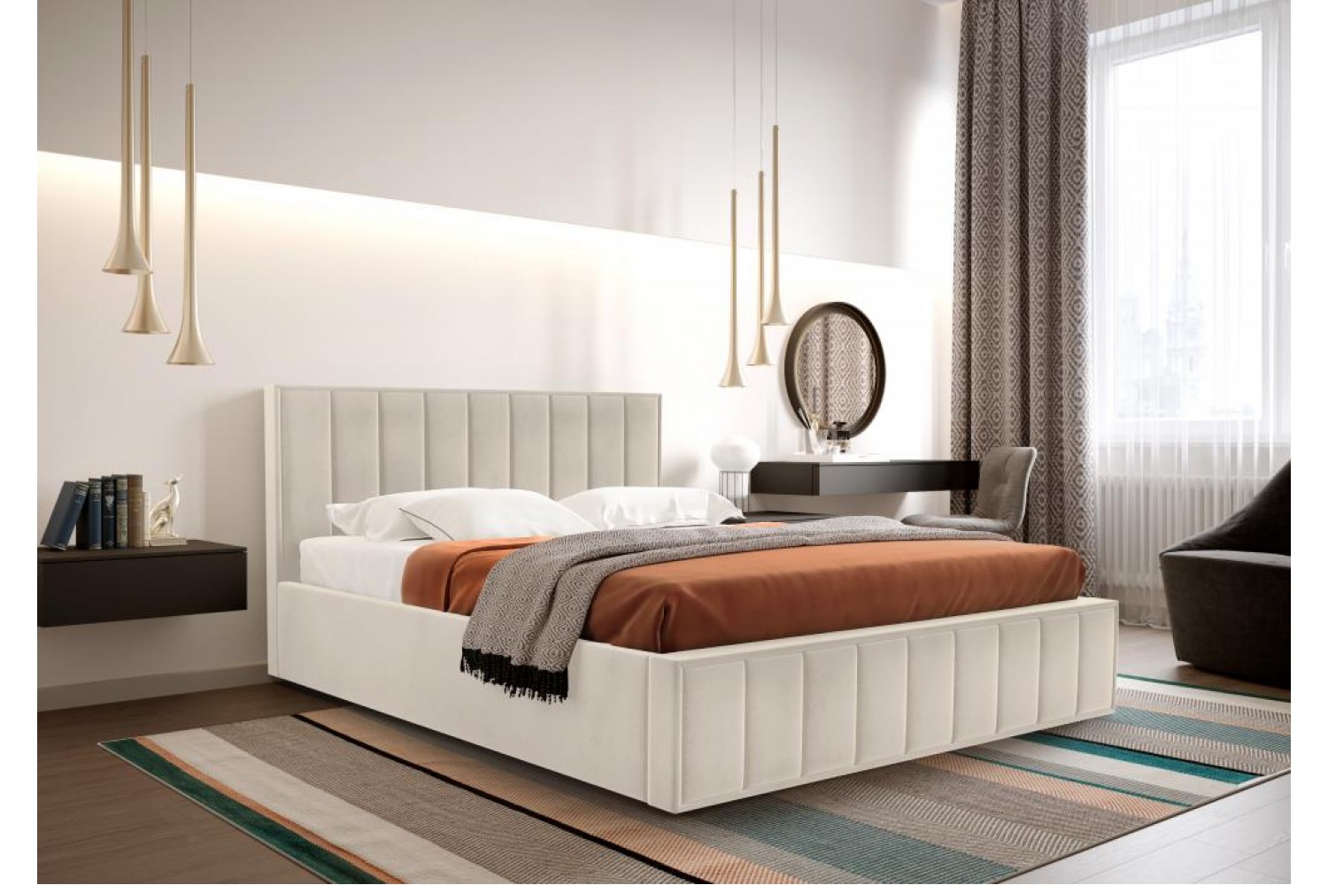 Кровать предлагает просторное спальное место шириной 1400 мм и длиной 2000 мм, что делает её подходящей как для взрослых, так и для подростков. Вы можете выбрать комплектацию с ортопедическим основанием на 5 опорах для максимального комфорта или с бельевым ящиком с подъемным механизмом для хранения постельного белья и других вещей.