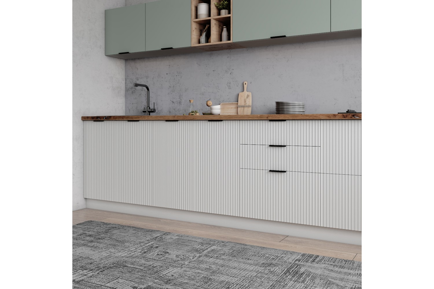 "Альберо" — новая кухонная коллекция, в которой безупречным образом сочетаются рисунок фрезеровки и самые трендовые оттенки. В коллекции 2Альберо" вы найдете современное решение, которое будет оставаться таковым еще много лет. Высокое качество материалов и премиальный внешний вид — все это коллекция "Альберо".