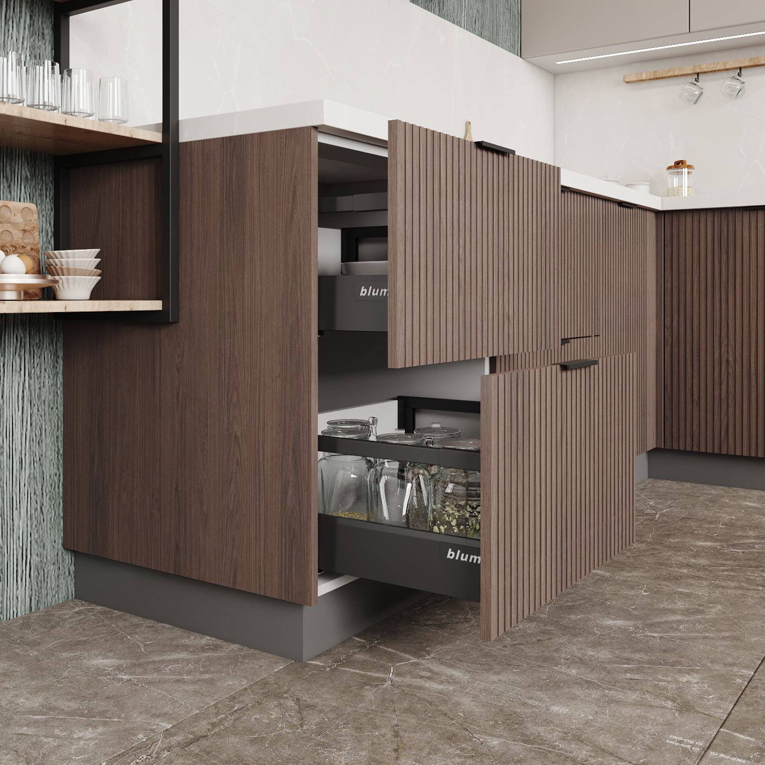 Во-вторых, доступная цена. Производство серийных модулей дешевле индивидуального изготовления, поэтому стоимость на 20-30% ниже. Третье преимущество — простота сборки. Многие модели собираются как DaVita, с инструкциями и минимальным инструментом. Кроме того, они экономят пространство: угловые модули используют "мертвые зоны", а открытые полки добавляют воздуха.