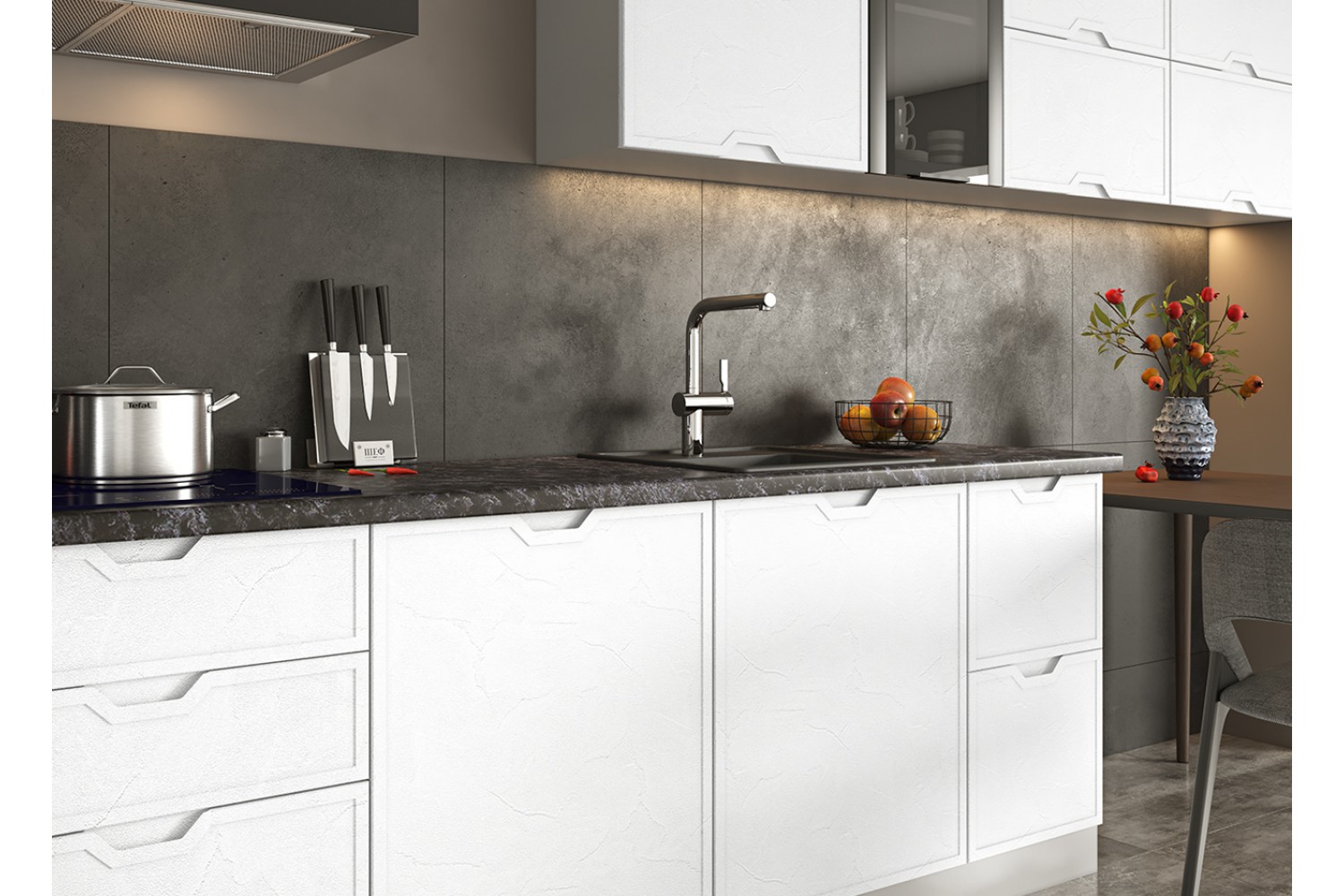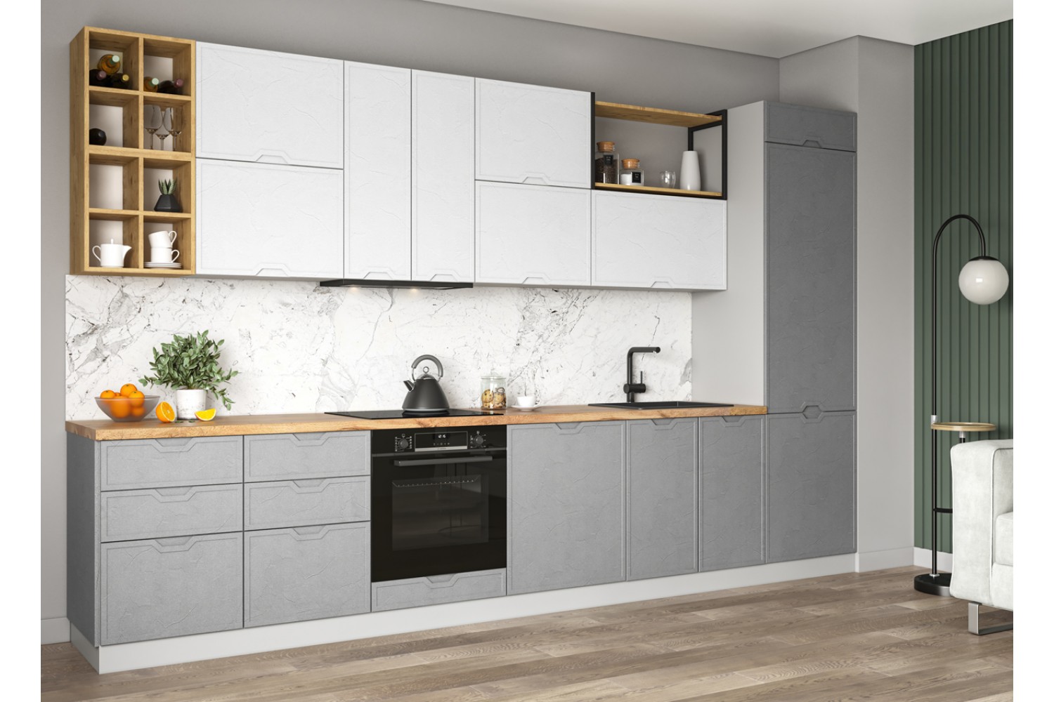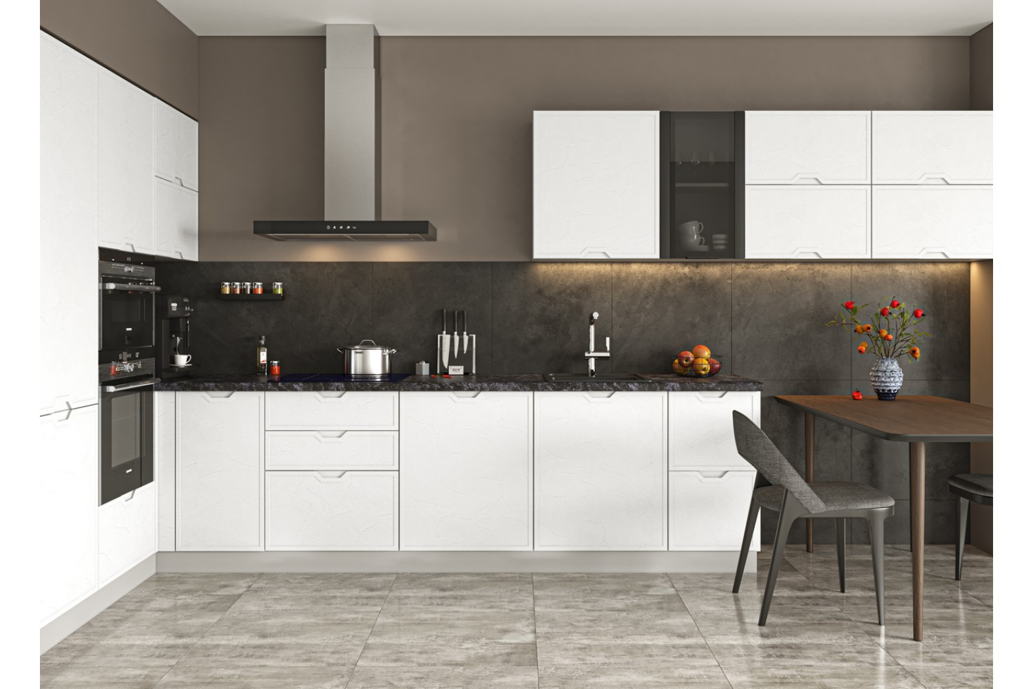 Данный гарнитур представлен в двух великолепных оттенках – Штукатурка белая и Штукатурка серая, которые могут быть идеальным дополнением для любой кухни.