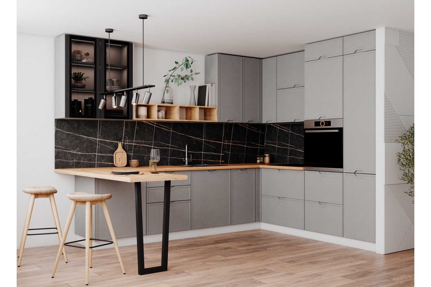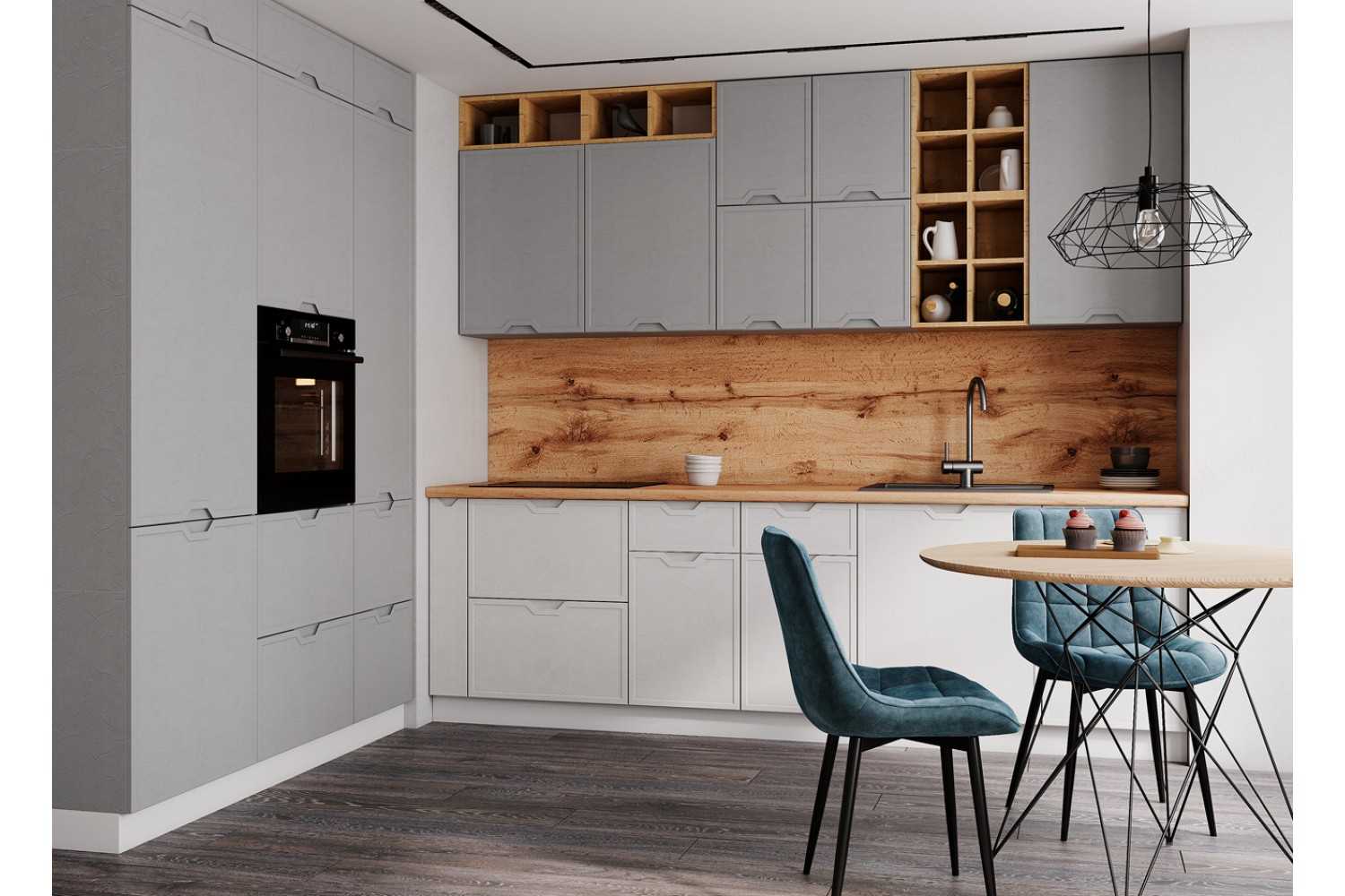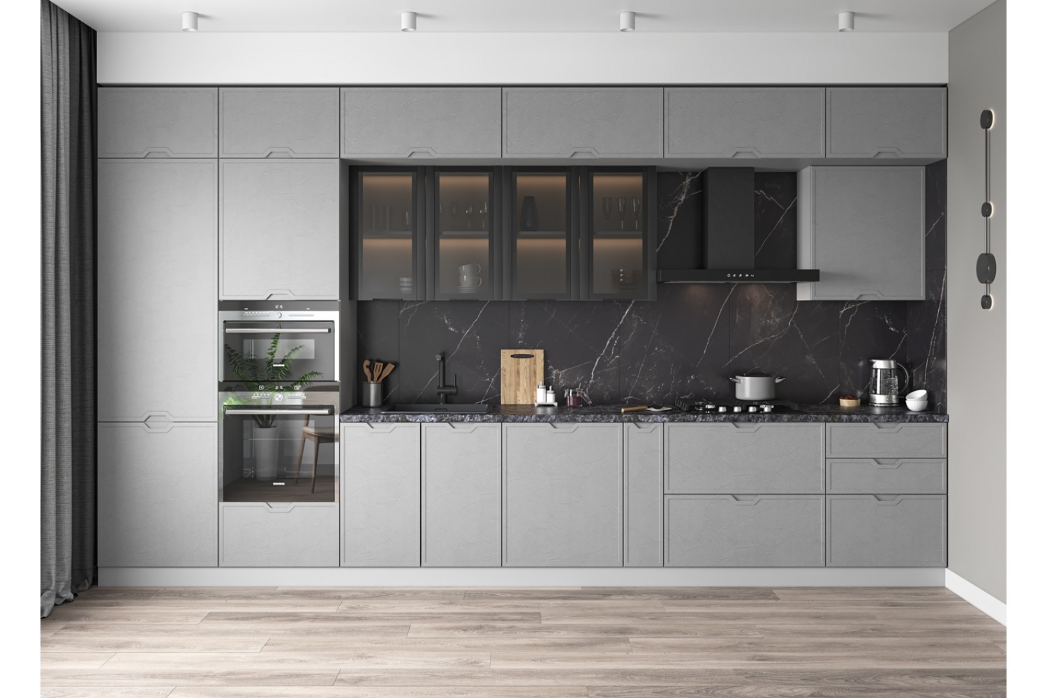 Кухонный гарнитур «Арка» — это современный и элегантный дизайн, созданный специально для людей, которые ценят красоту и функциональность в своем доме. Выделяется на фоне других кухонных гарнитуров уникальной фрезеровкой вдоль фасадов, которая придает ему особый шарм и стиль.