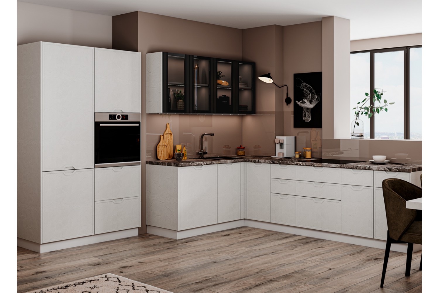 Кухня «Арка» отличается уникальным дизайном, в котором предусмотрена новая интегрированная ручка.