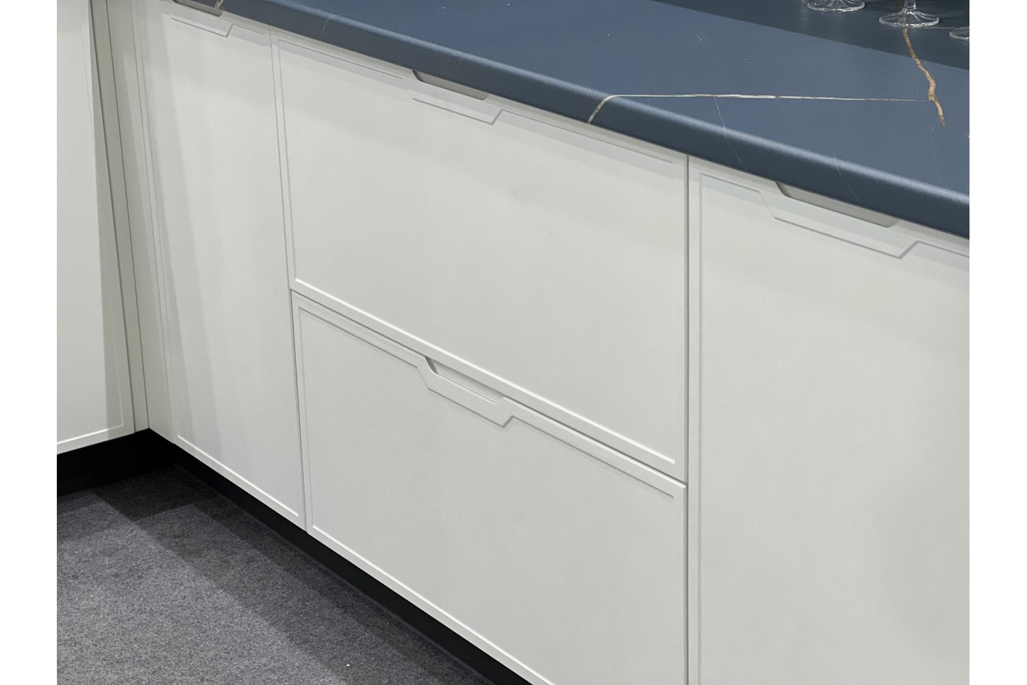 Для удобства использования, в гарнитуре используется новейшая интегрированная ручка, которая позволяет легко открывать и закрывать ящики и фасады.