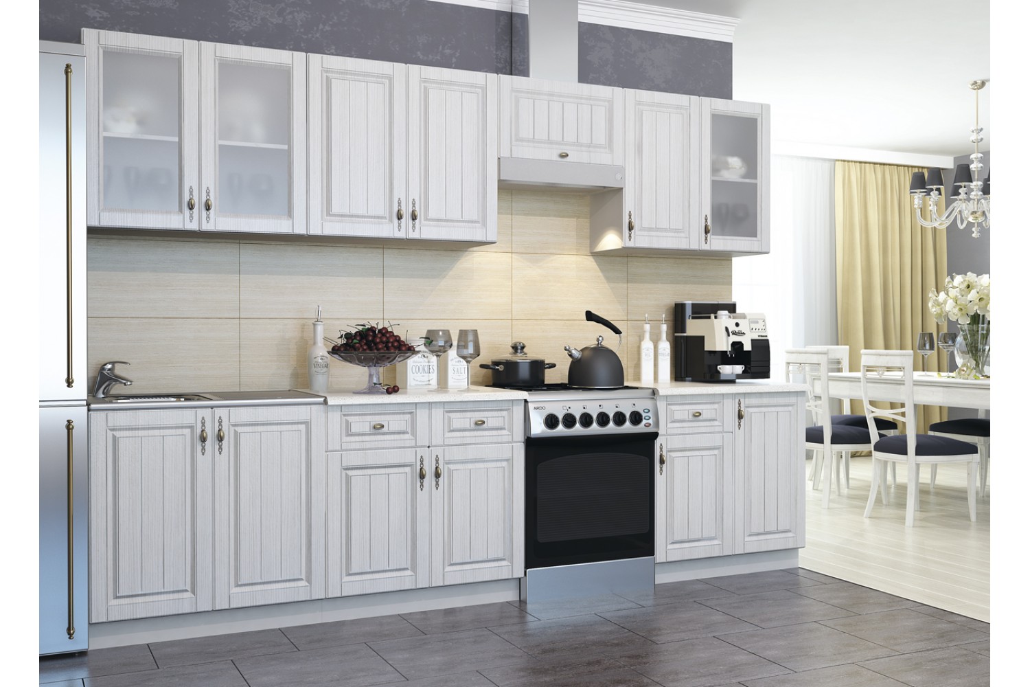 Все кромки облицовки закрыты пленкой ПВХ, защищающей ламинированную поверхность. Для сборки модулей использовался качественный материал, который позволяет недорогому кухонному гарнитуру сохранить первозданный внешний вид на протяжении длительного периода времени.