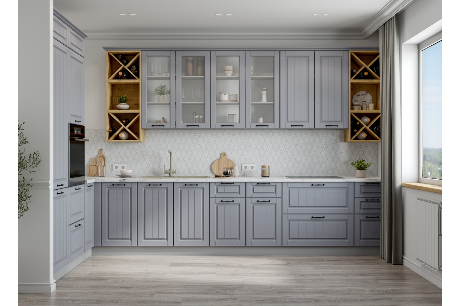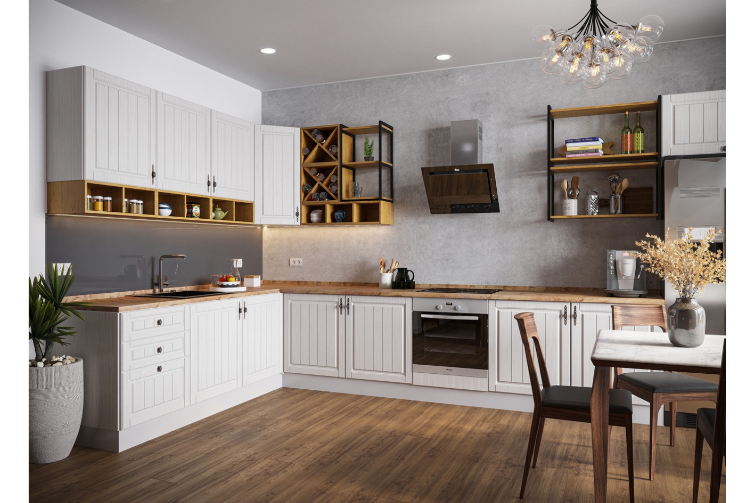 Благодаря индивидуальной комплектации, можно собрать недорогой и стильный кухонный комплект, который идеально впишется в современные интерьеры кухонного пространства. Использование модулей со светлыми оттенками фасадов и серым корпусом поможет создать в небольшом помещении визуальное ощущение простора и большого пространства.