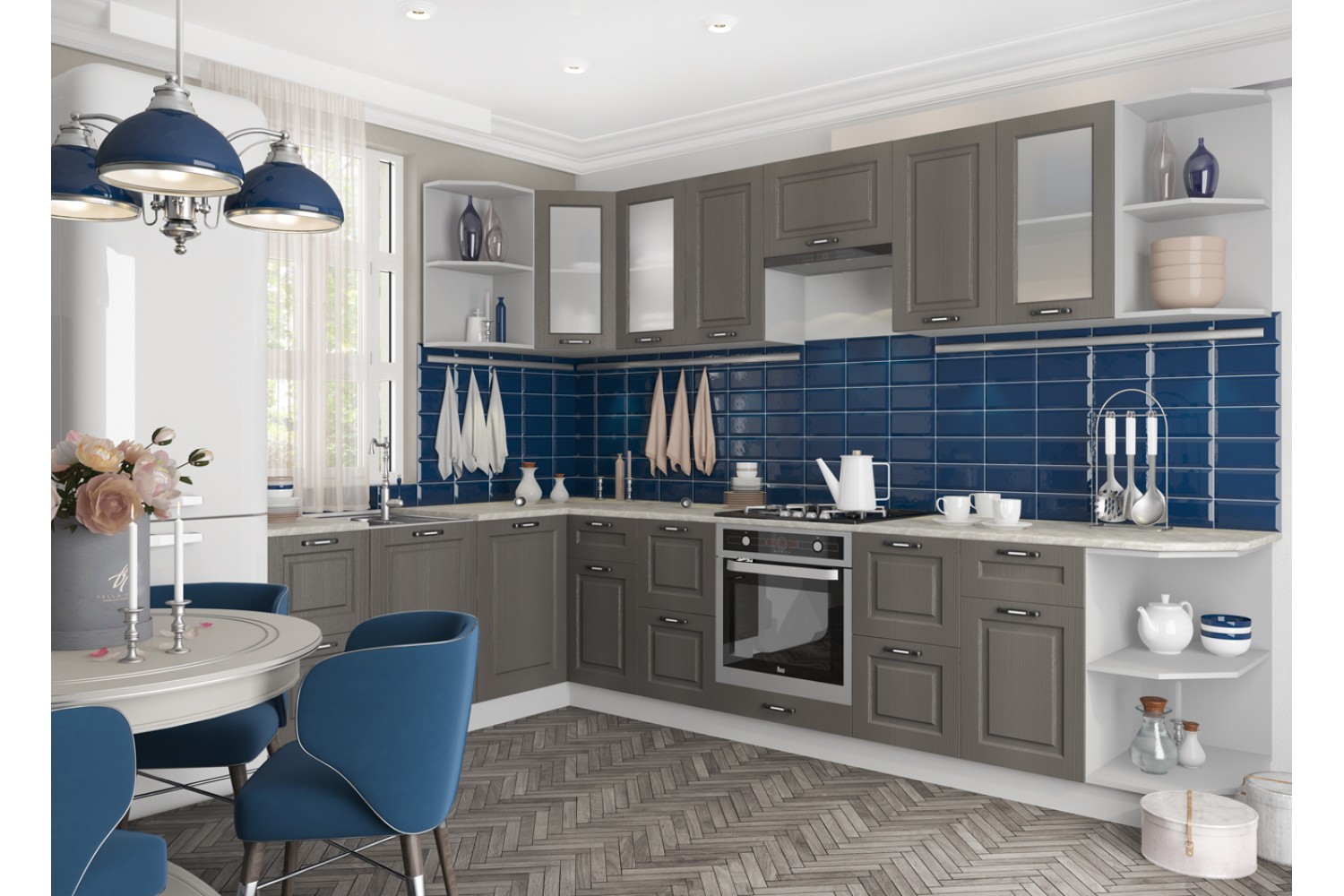 В кухонном гарнитуре «Капри» фасады представлены в богатом разнообразии оттенков.