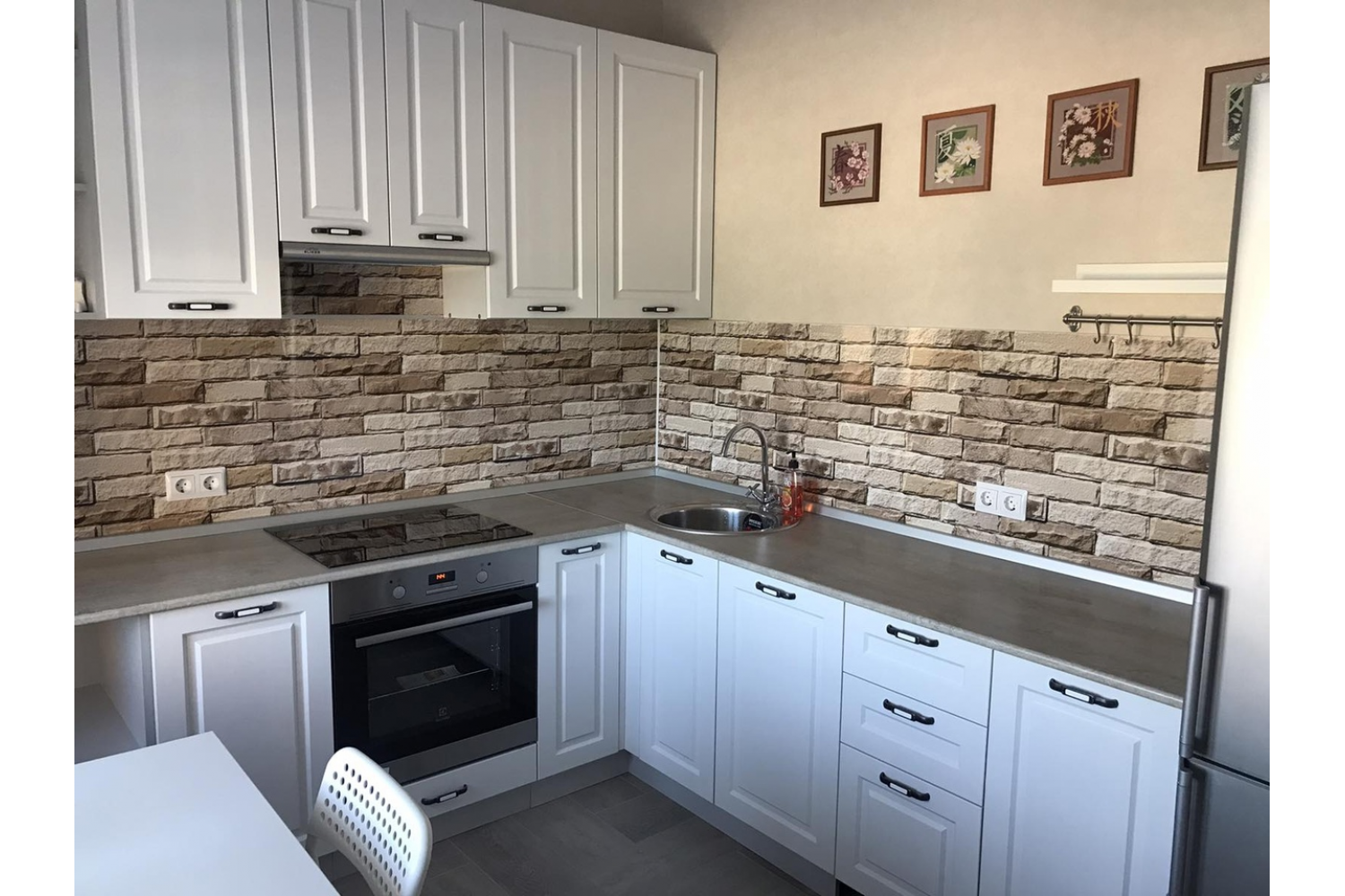 Если вы предпочитаете белую кухню, к тому же помещение маленькое и плохо освещено, лучше предпочесть, выбирая фасады, камень светлый или липа белый.