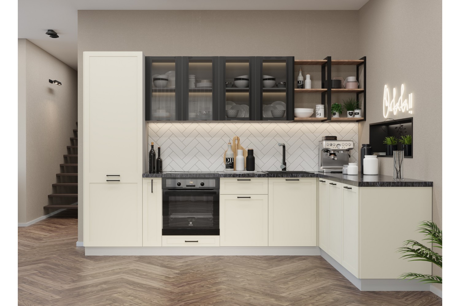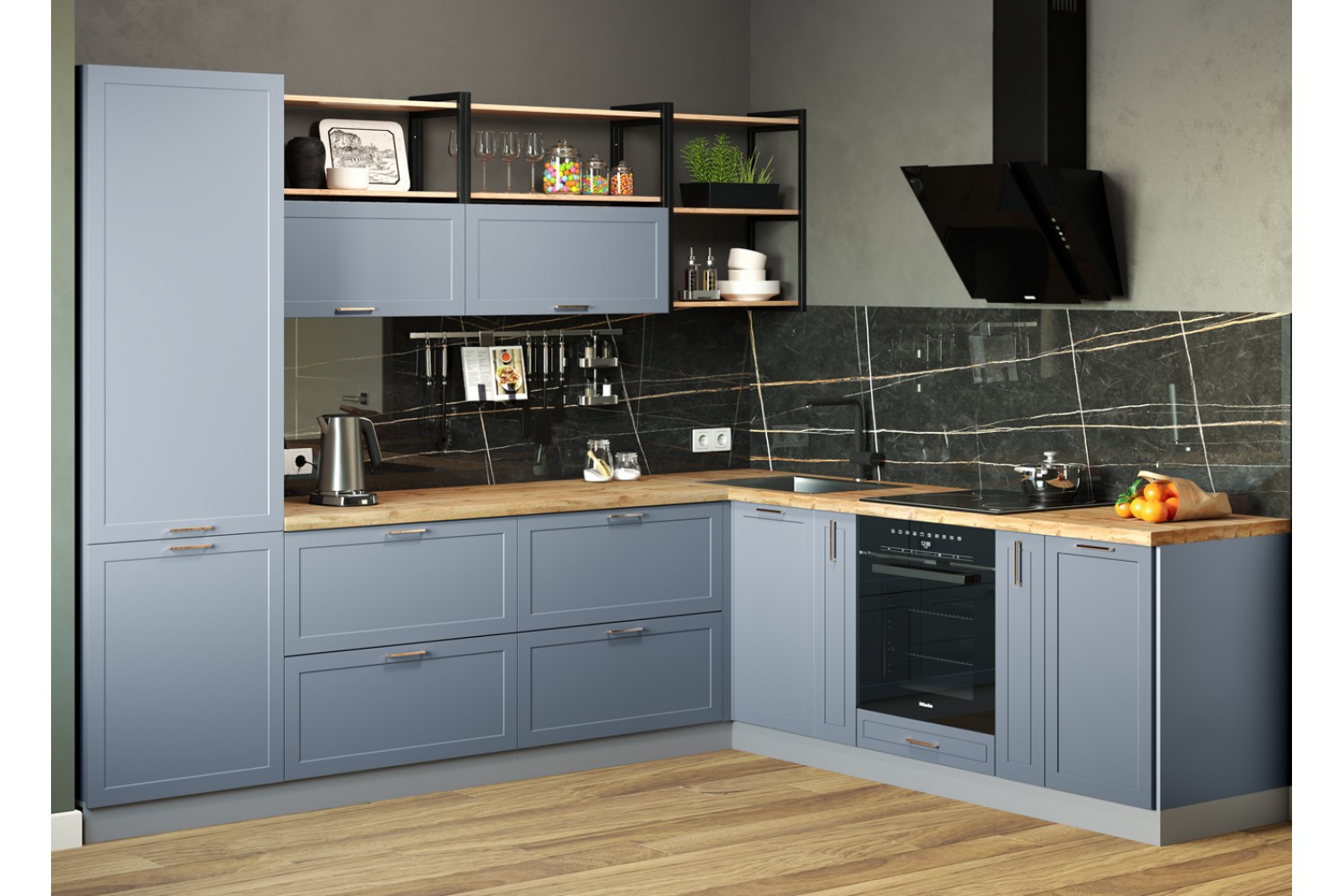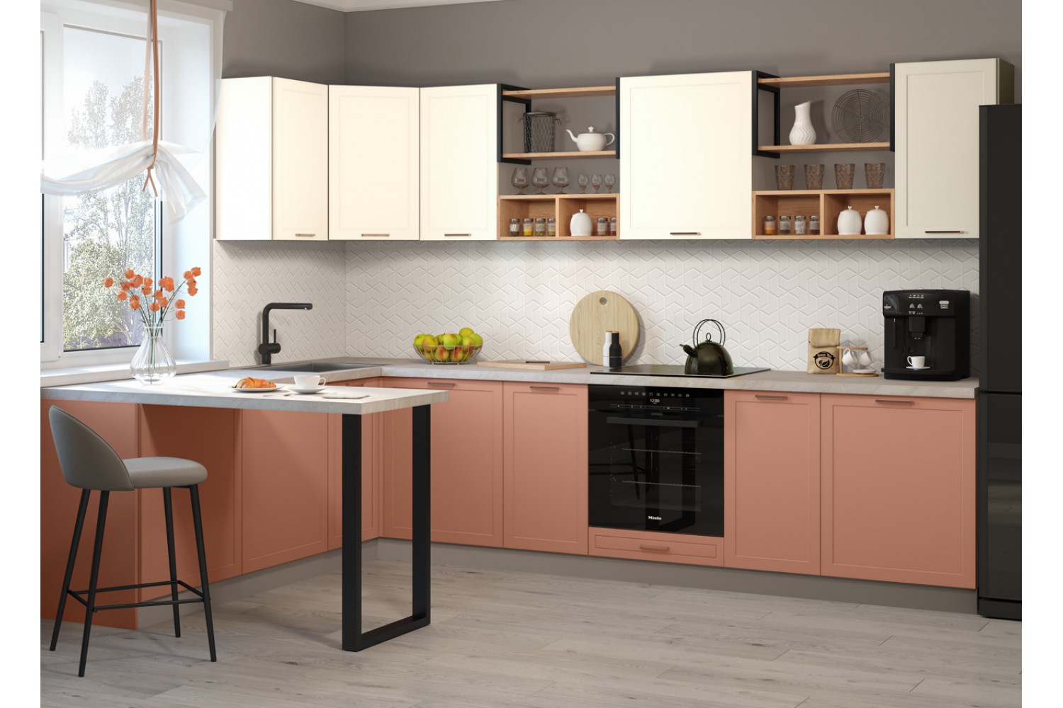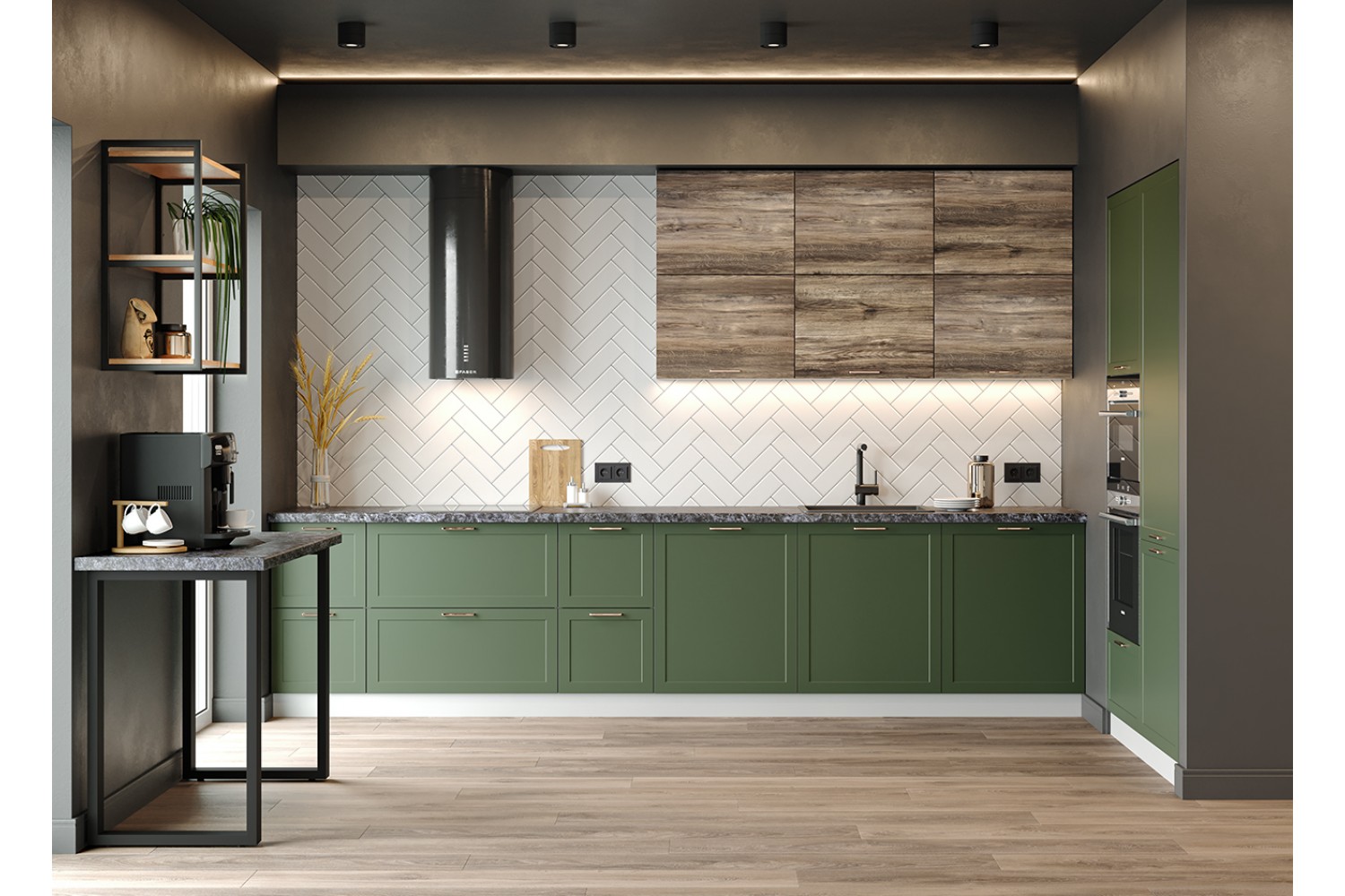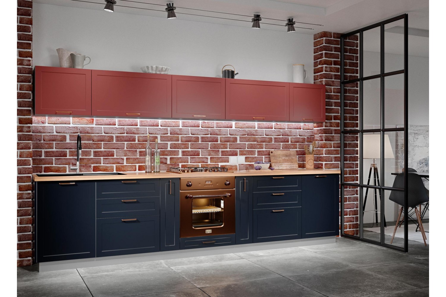 Стильная кухня «Квадро» также подойдет для оформления помещений в стиле лофт и индастриал.