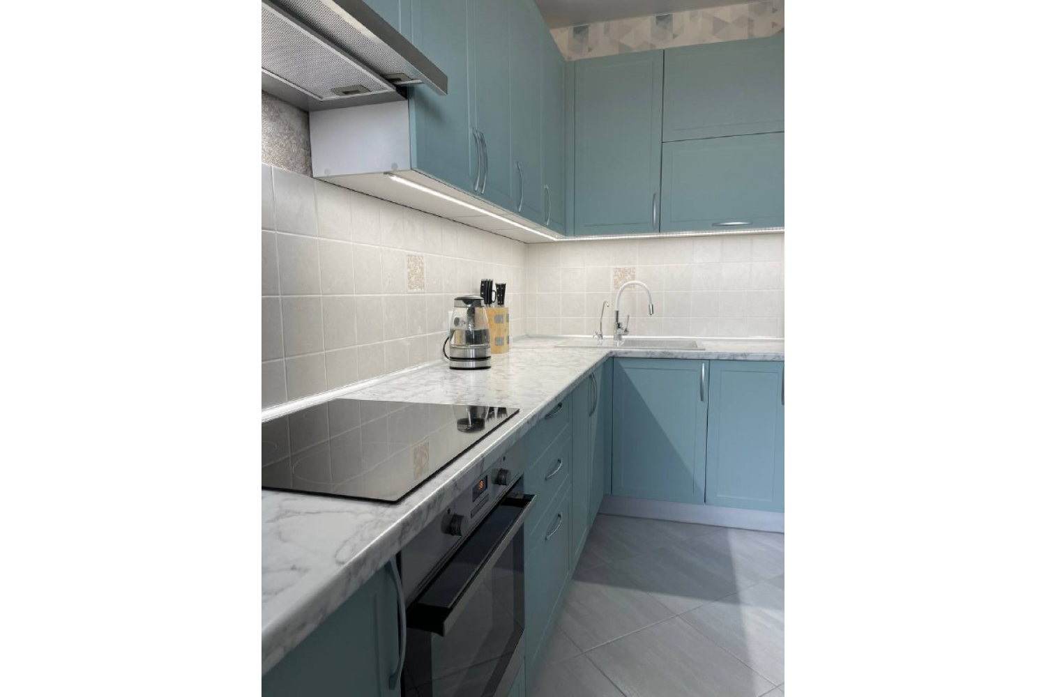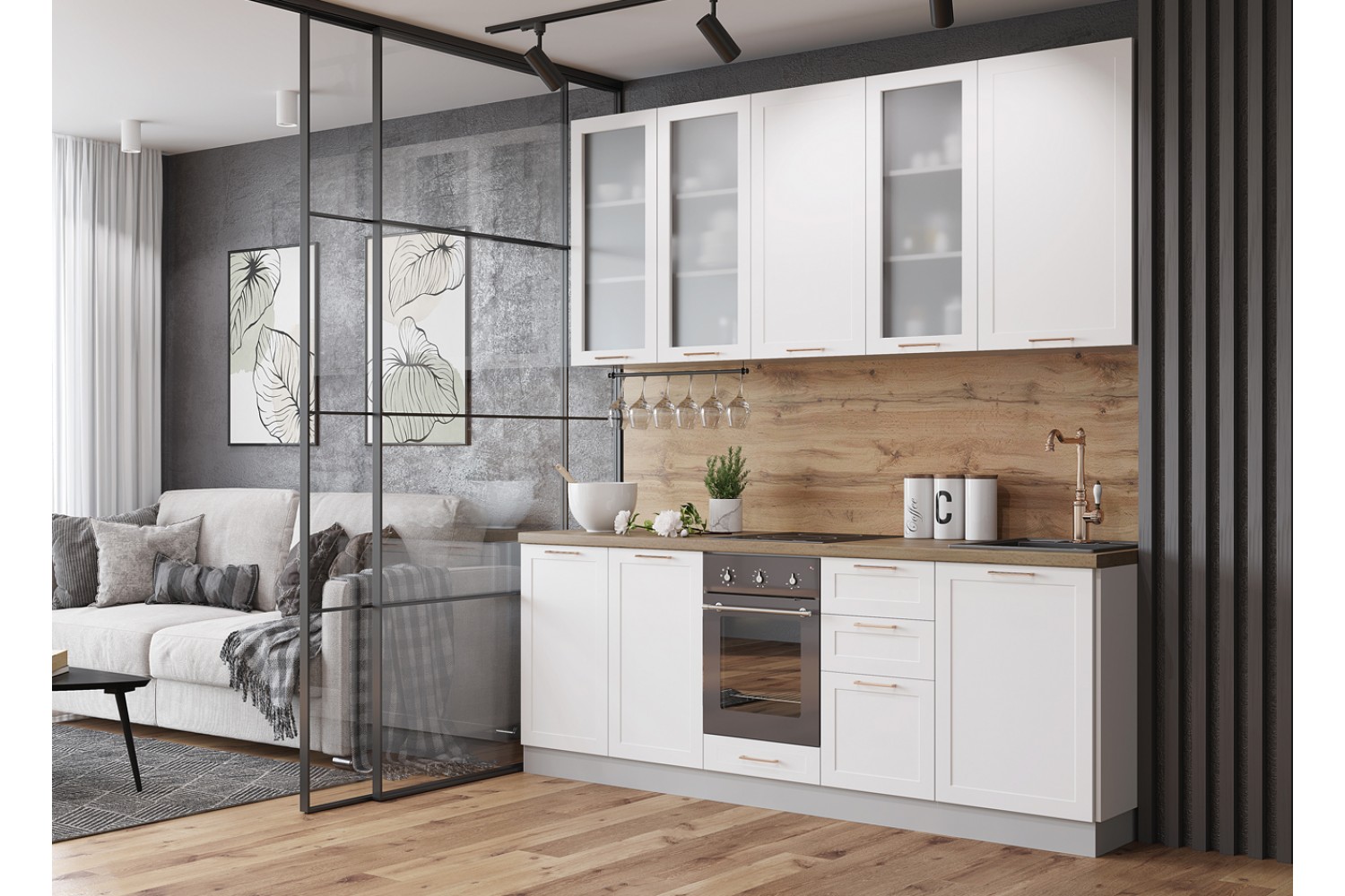 Кухонный гарнитур «Квадро» — удачное воплощение скандинавского стиля, прекрасно адаптированное к вкусам современных хозяек.