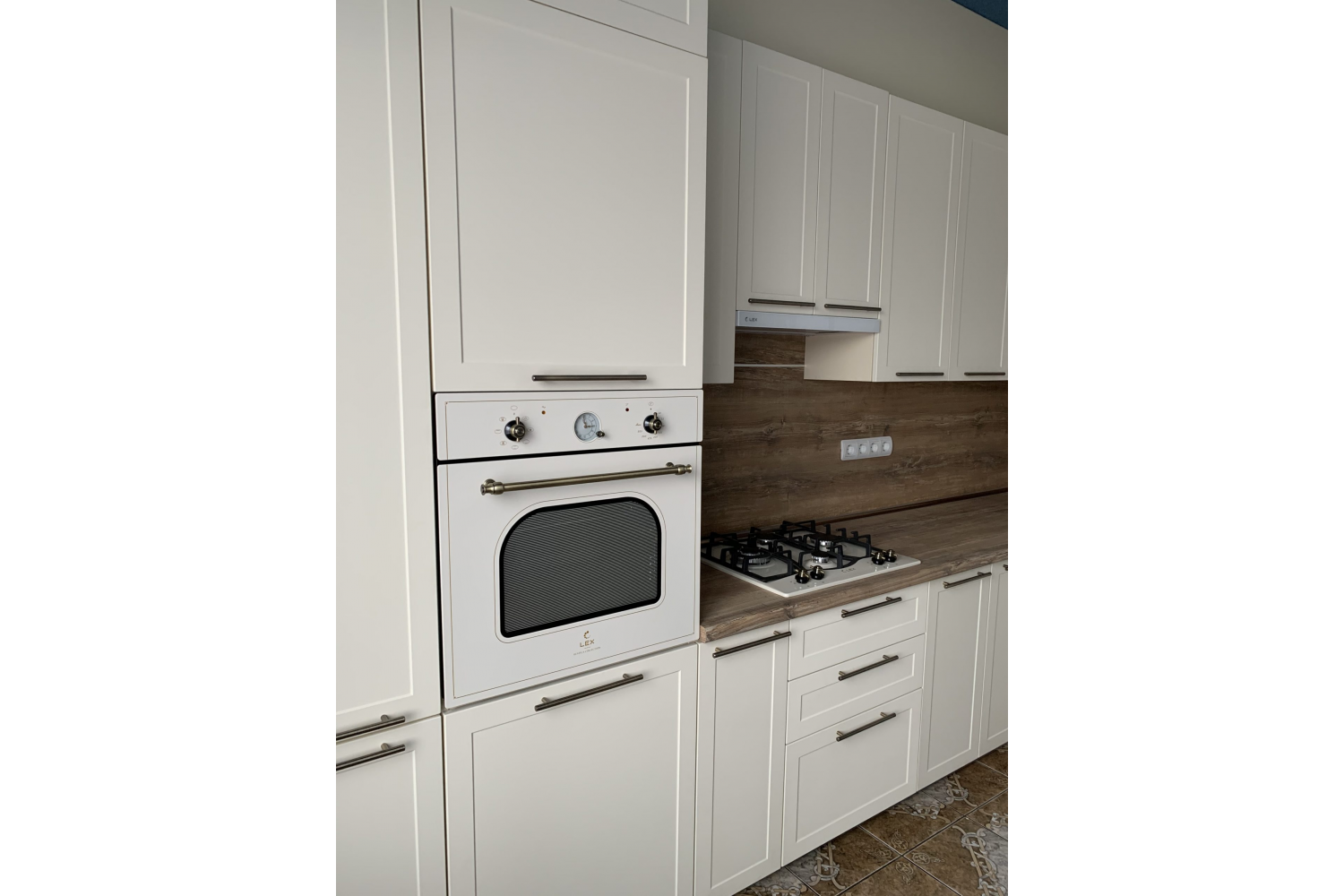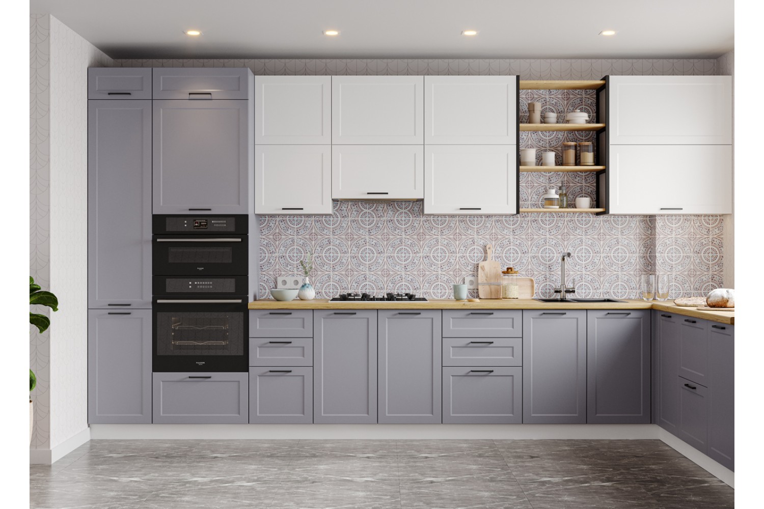 Во вместительных напольных и подвесных модулях найдется место для всего, что может потребоваться хозяйке.