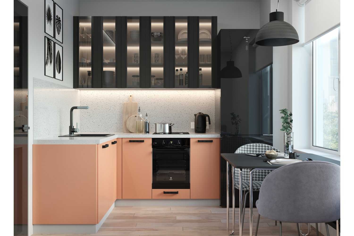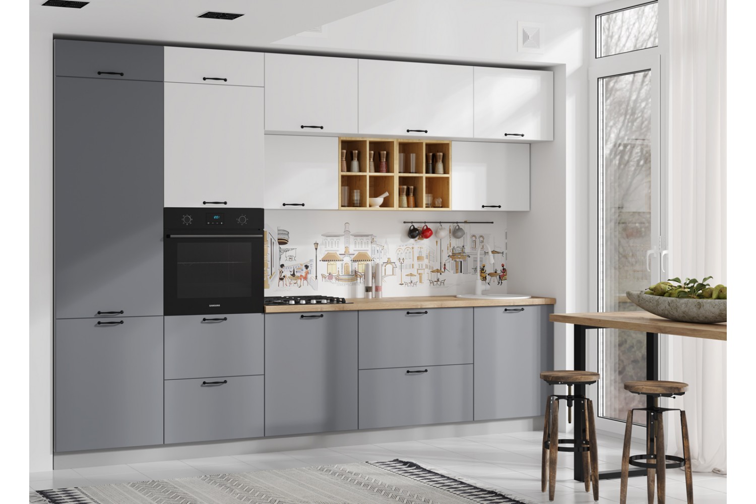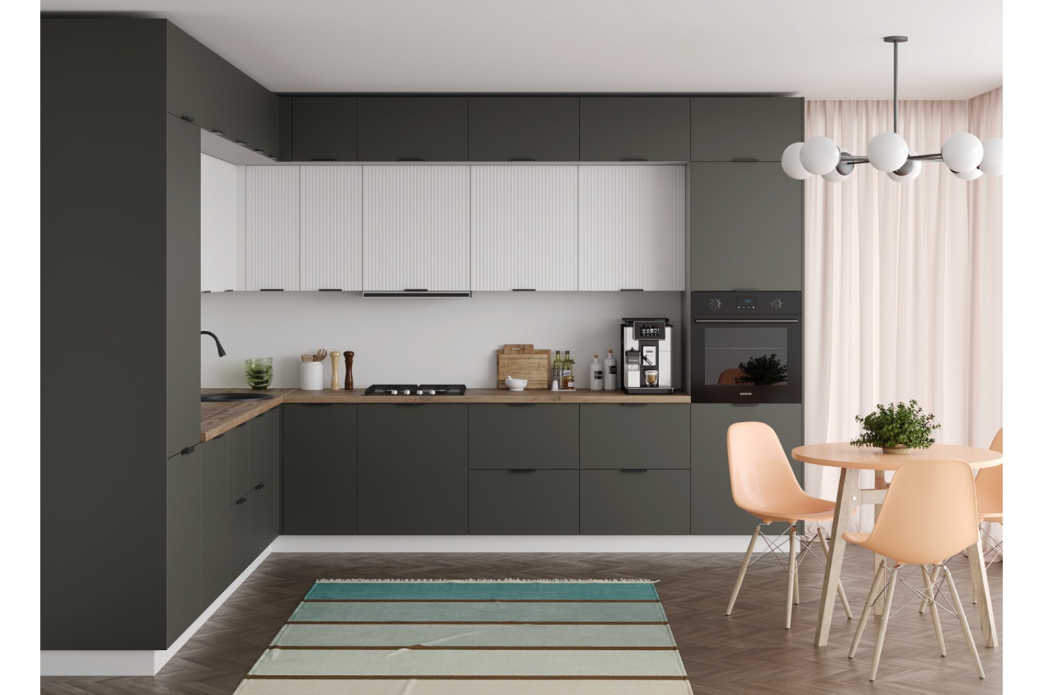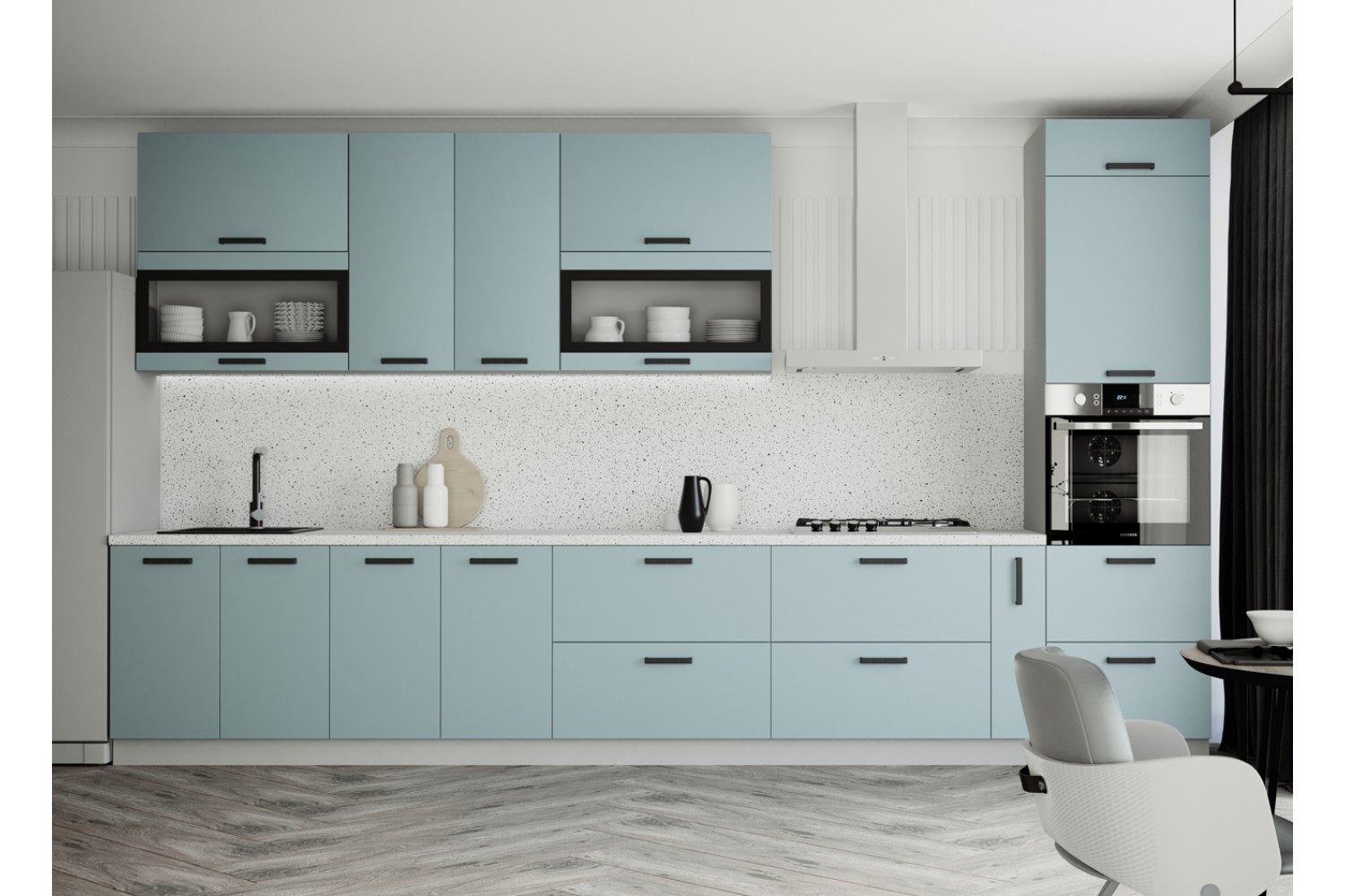 Минимализм присутствует и в цветах кухонного гарнитура.