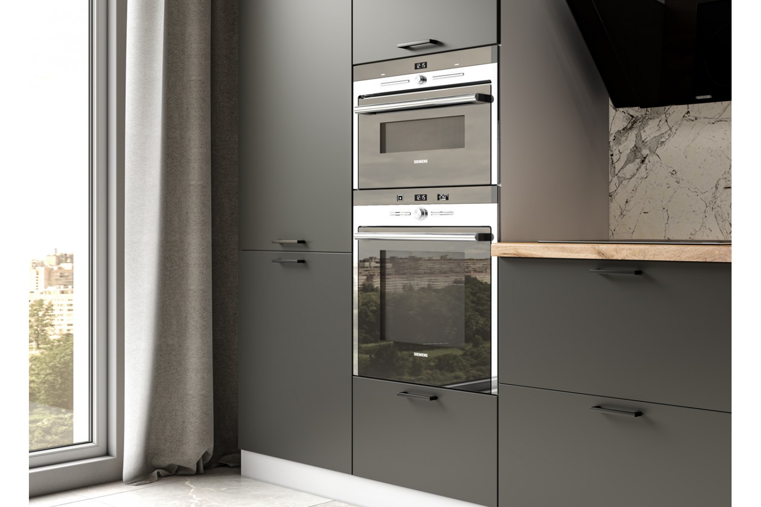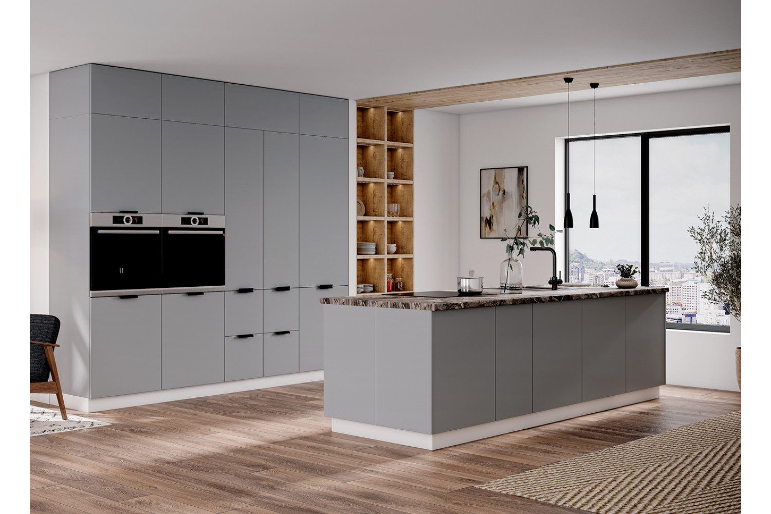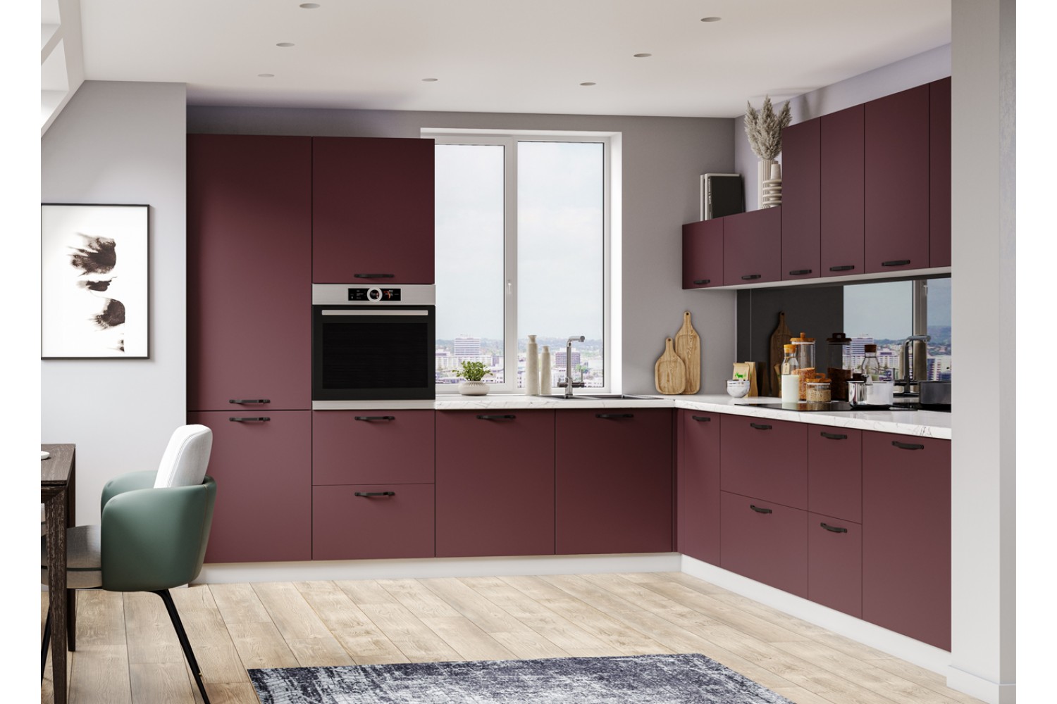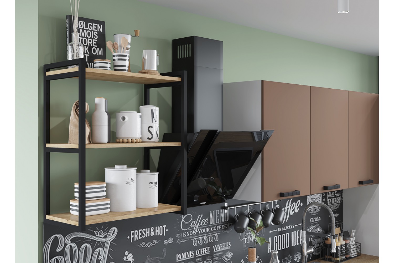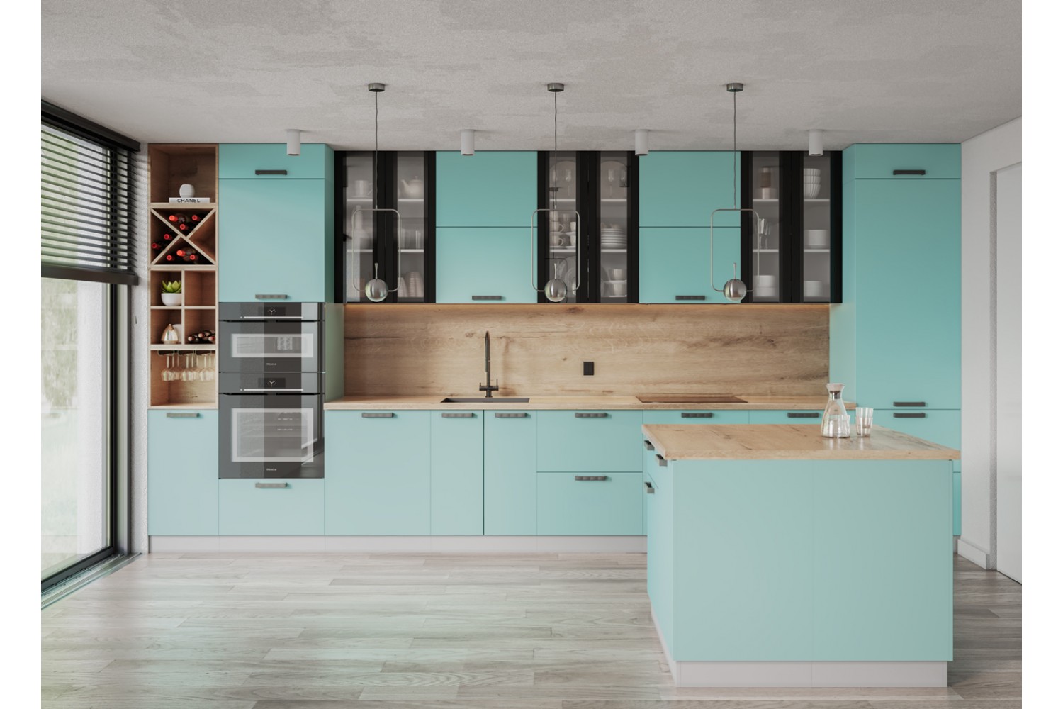Минимализм присутствует и в цветах кухонного гарнитура.