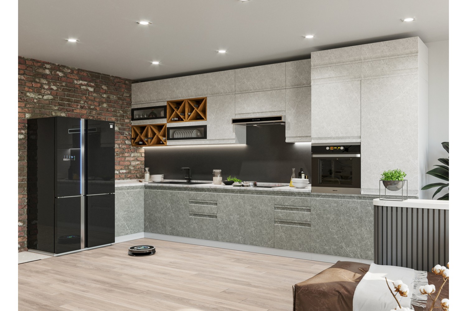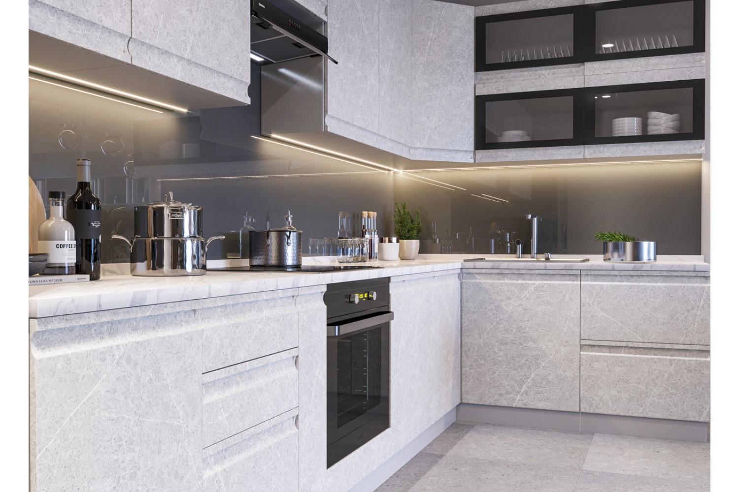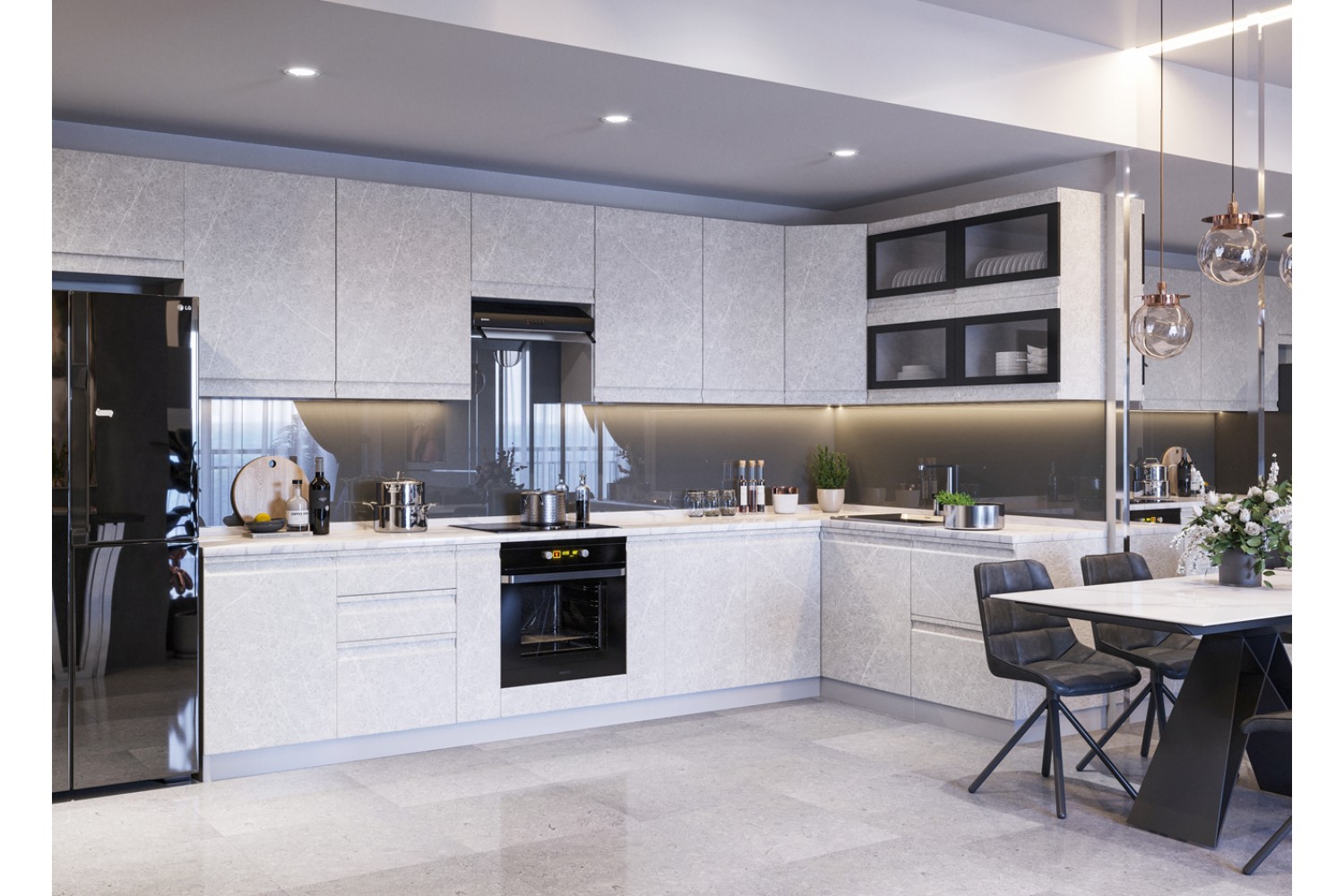 В сборке кухонного гарнитура «Скала» чувствуется рука мастера, а дизайн привлекает изысканной простотой.