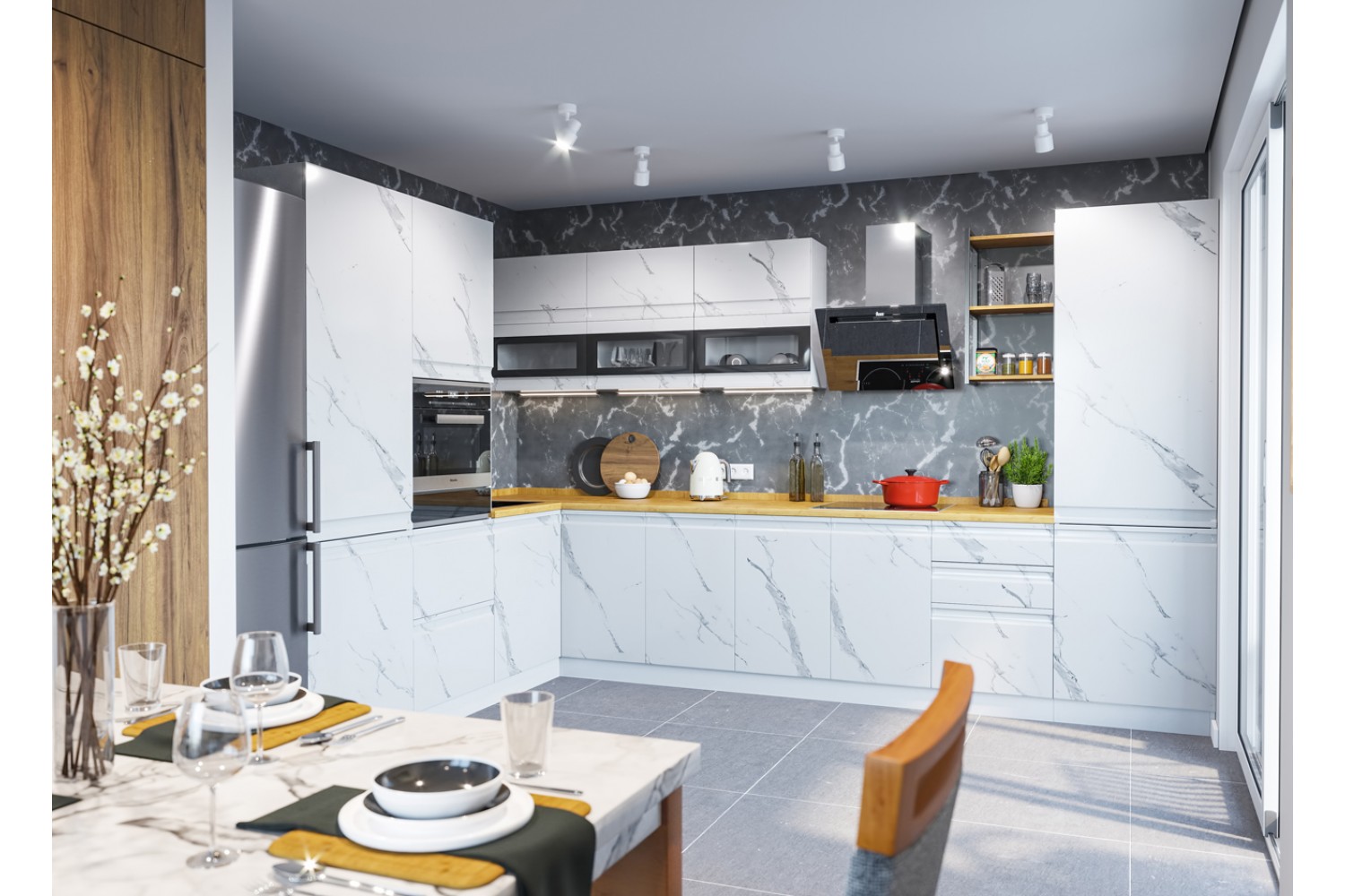 И все-таки, она лучшая! Кухня этой коллекции представлена в цвете мрамор и гранит.