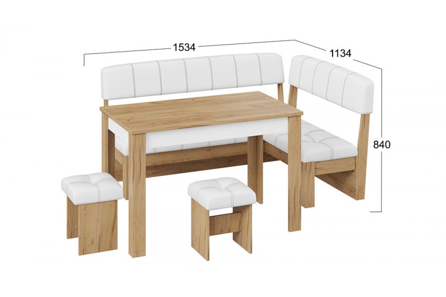 Кухонный уголок «Альфа» - МФ-100.001 от фабрики ТриЯ – идеальное решение для вашей кухни. С шириной 1534 мм и высотой 840 мм, этот уголок сочетает в себе комфорт и стиль. Обивка из качественного кожзама обеспечивает легкость в уходе и долговечность, а современный дизайн гармонично впишется в любой интерьер. Удобные сиденья и компактные размеры делают его отличным выбором для малых и средних кухонь. Превратите ваше пространство в уютное место для семейных встреч и дружеских посиделок с кухонным уголком «Альфа».