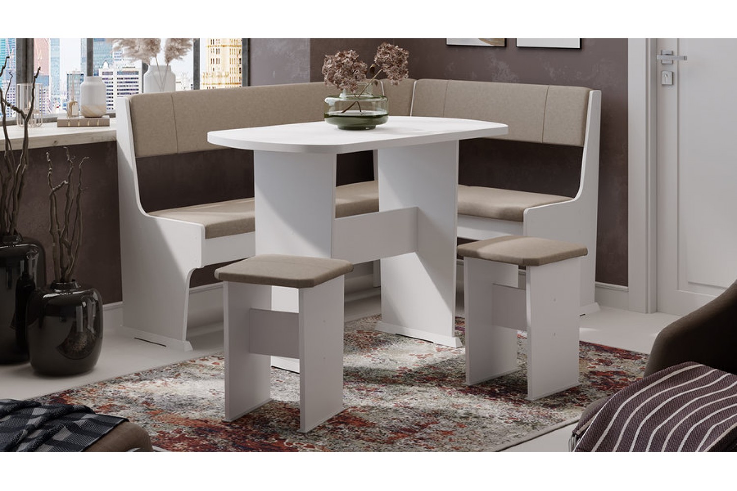 Кухонный уголок «Рио» в белом и кремовом цветах для вашего интерьера