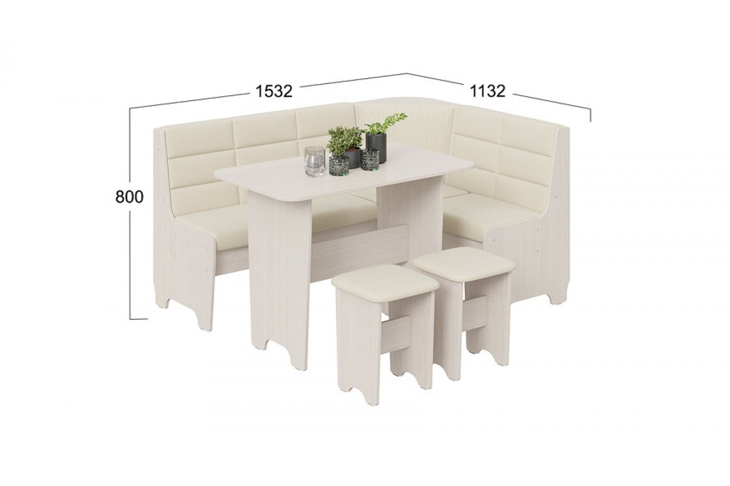 Кухонный уголок «Техас» Исп.2 в молочном и бежевом цветах от фабрики ТриЯ — идеальное решение для вашей кухни. С шириной 1132 мм, высотой 800 мм и длиной 1532 мм, этот уголок обеспечивает комфортное место для отдыха и приема пищи. Стильный дизайн и нейтральная цветовая гамма легко впишутся в любой интерьер, добавляя уют и элегантность. Изготовлен из качественных материалов, он гарантирует долговечность и надежность. Превратите вашу кухню в уютное пространство для общения и семейных ужинов с кухонным уголком «Техас».