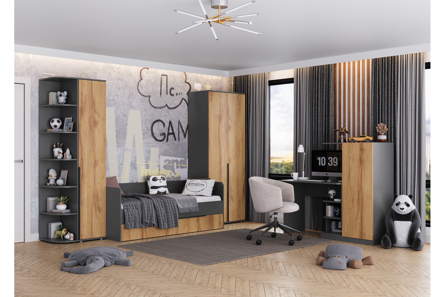 Кровать 1,2 "Стил" 1242х2049х900 Темно серый/Дуб золотистый