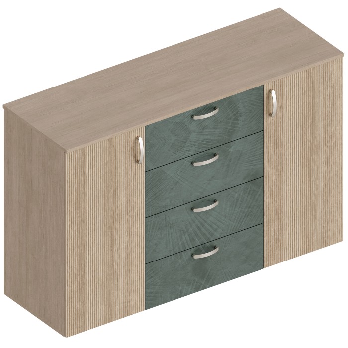 МС "Ева" Комод 2-ств с 4 ящиками 1400х460х920 Тира/Кадена вуд/ Палм грин