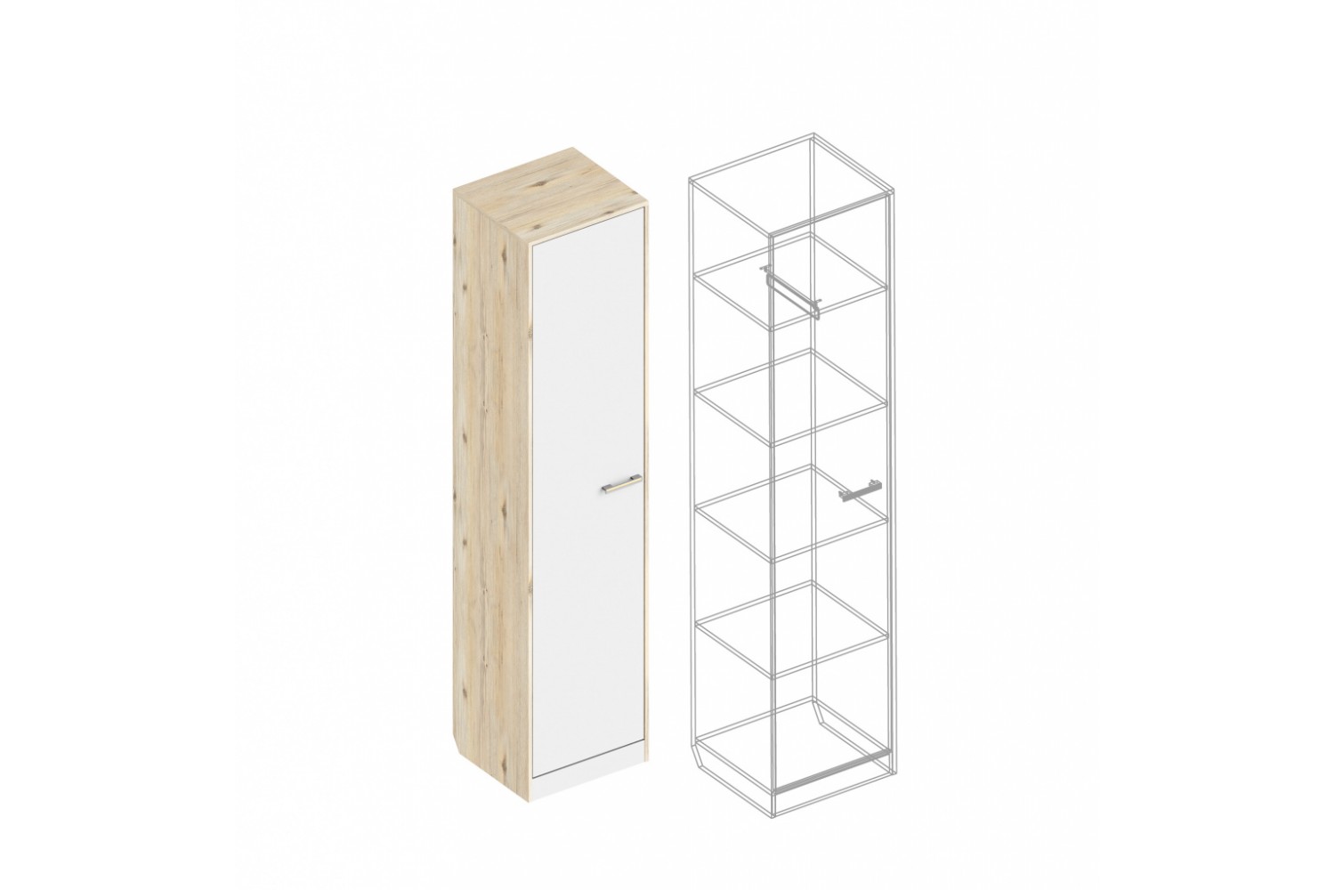 Описание Пенал «Милана» 1-ств с полками и вешалкой 500х450х2200