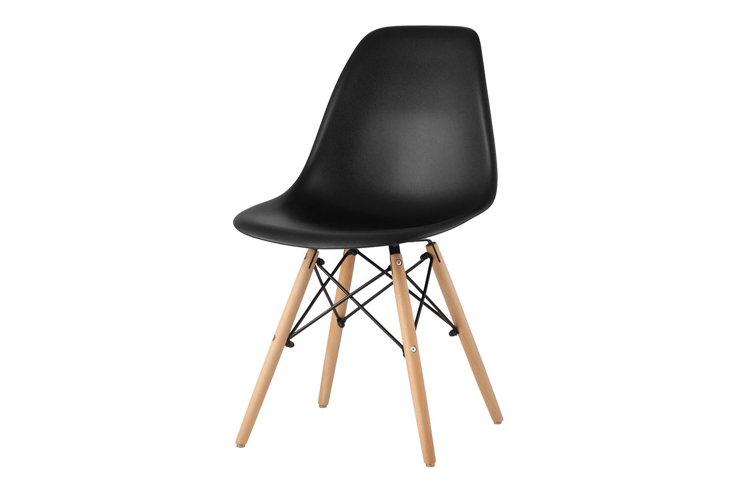 Стул Eames DSW черный наделен органичным дизайном, который придумали братья Имз. Модель сочетает в себе пластик, дерево и металл. Изогнутые и прямые линии придают внешнему виду изюминку. Стул легко впишется в интерьеры направления лофт, хай-тек или модерн. Может использоваться в домашних условиях, а так же в кафе.
