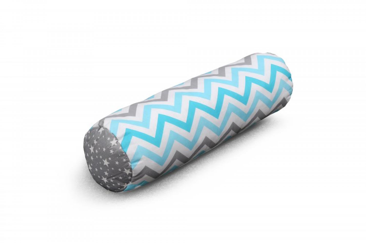 Описание Подушка-валик Зигзаг небесный/Звездопад на сером