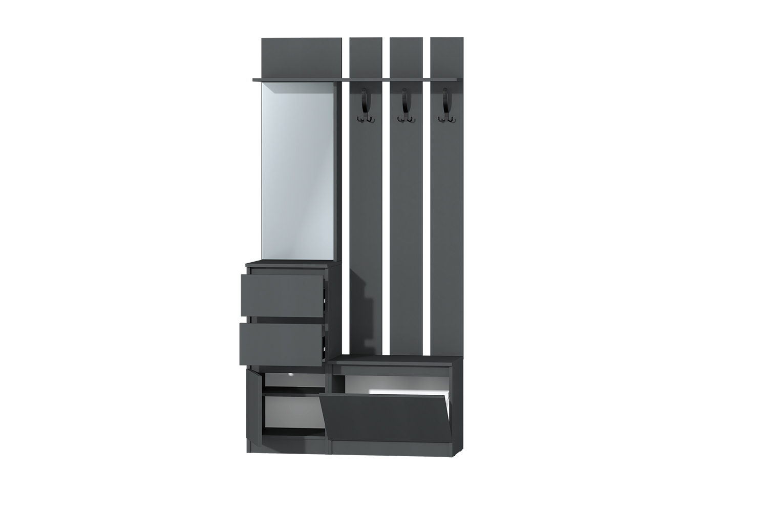 Модель включает удобные ящики с глубиной 300 мм, которые помогут организовать хранение вещей. Зеркало с еврокромкой добавляет современный акцент и визуально расширяет пространство. Прихожая имеет одностороннюю ориентацию сборки и поставляется в двух упаковках, что облегчает транспортировку и установку.