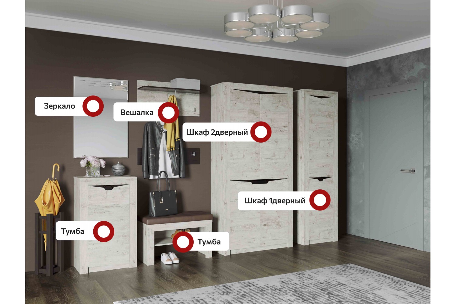 Описание Прихожая "Соренто" композиция #4 Дуб бонифаций