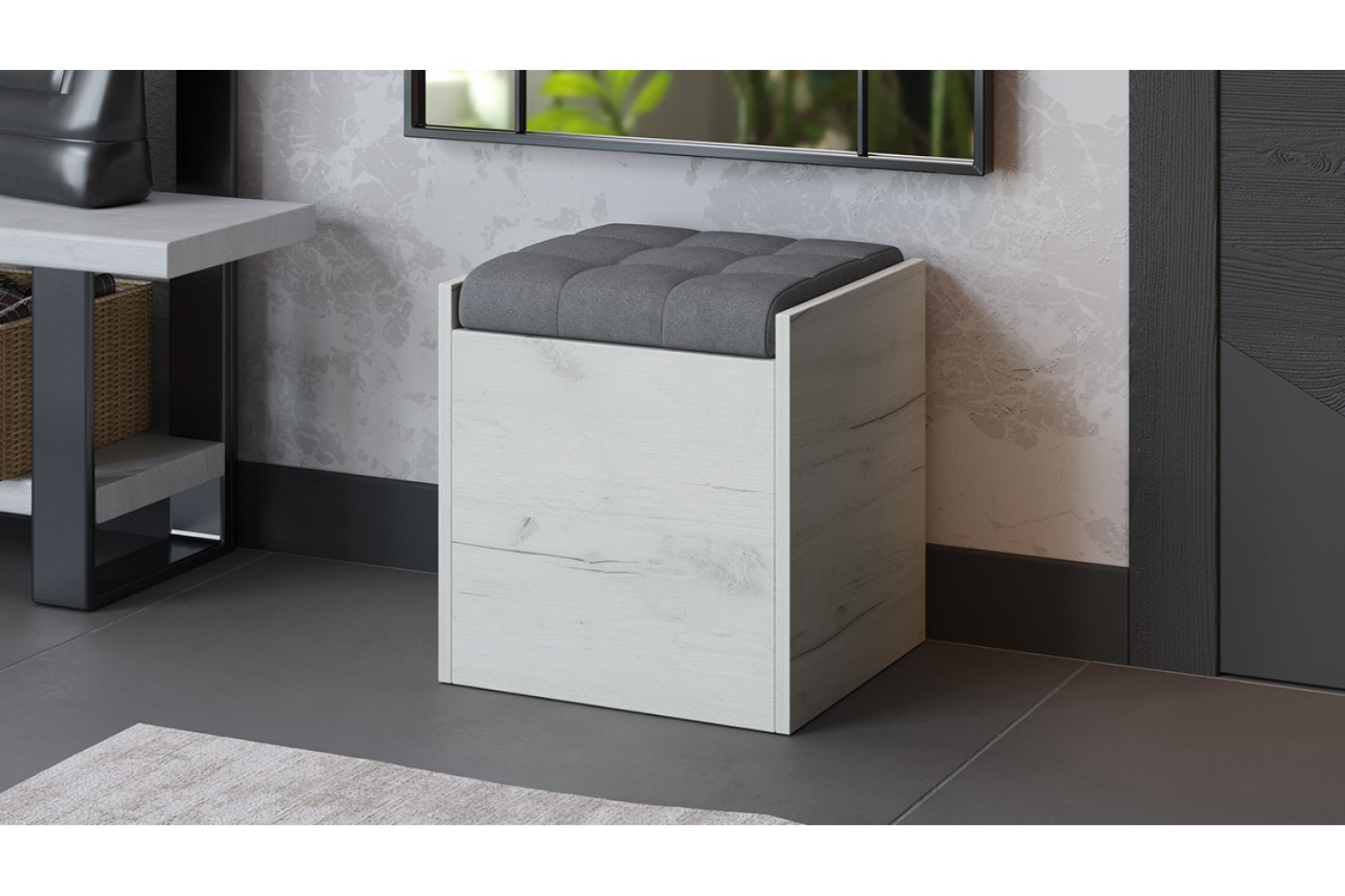 Каркас выполнен из качественного ЛДСП с прочной ПВХ кромкой и представлен в элегантном цвете «Дуб крафт белый» с платиновым оттенком, что добавляет нотку современности. Обивка из мягкого велюра обеспечивает комфорт и приятные тактильные ощущения.