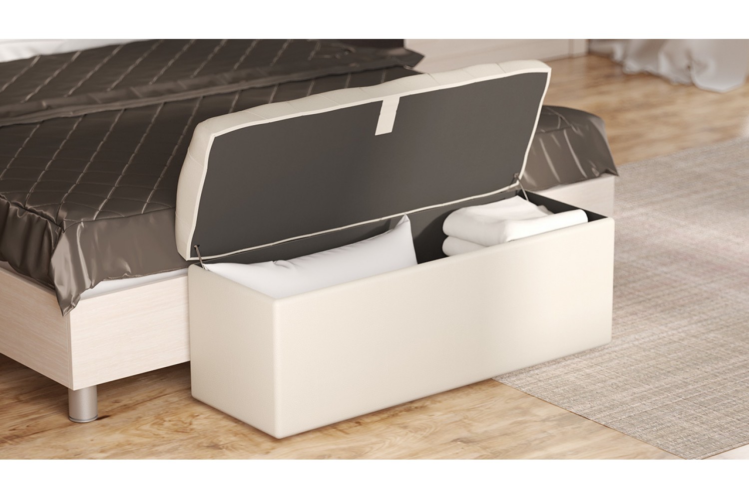Изготовленный из прочного ДСП, пуф обладает надежной конструкцией и гарантией 12 месяцев. Срок службы составляет до 10 лет, что подтверждает высокое качество изделия. Обивка из экокожи не только придает ему элегантный вид, но и облегчает уход за ним. Пластиковые ножки обеспечивают устойчивость и защищают пол от повреждений.