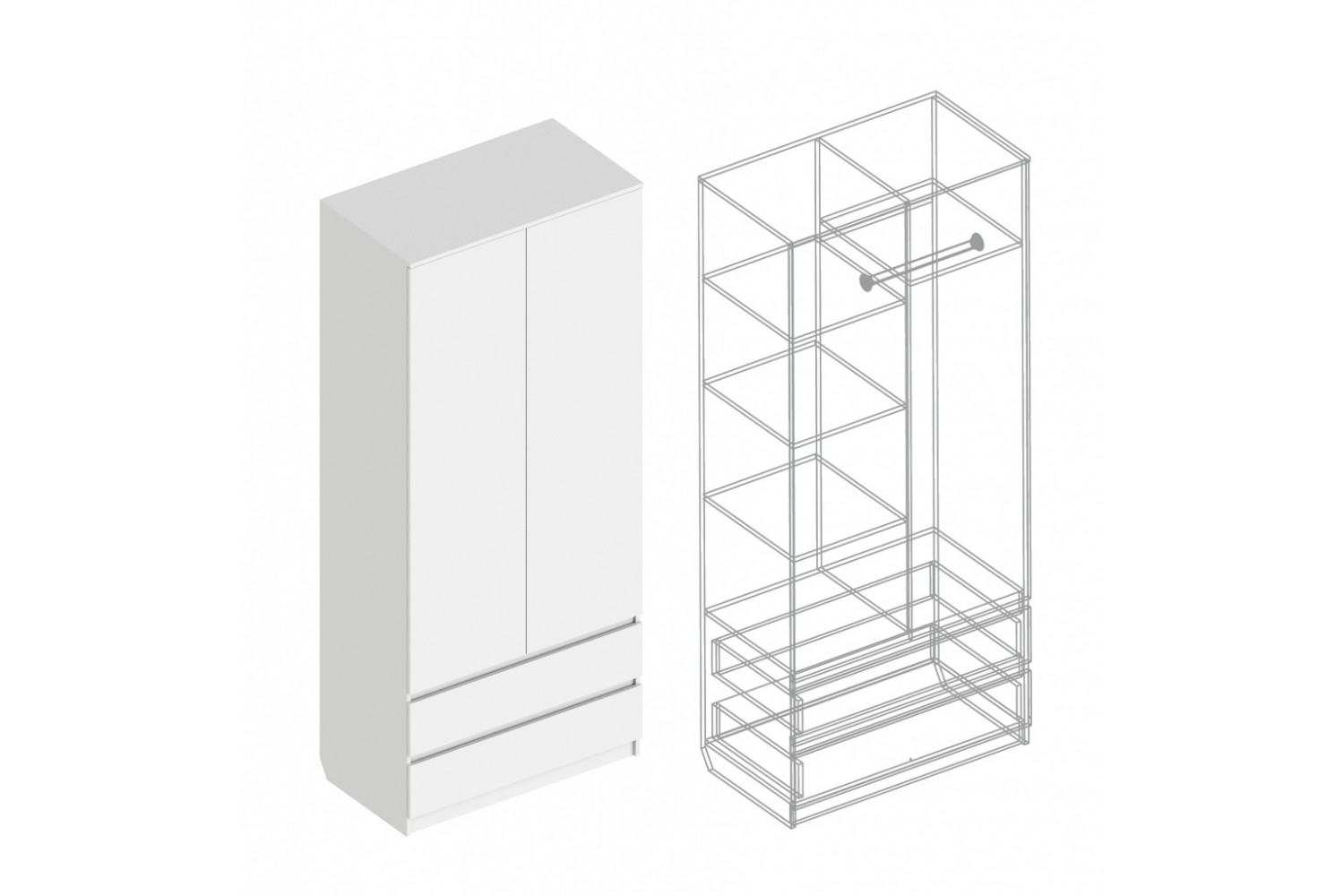 Описание Шкаф 2-ств с 2 ящиками 900х500х2100