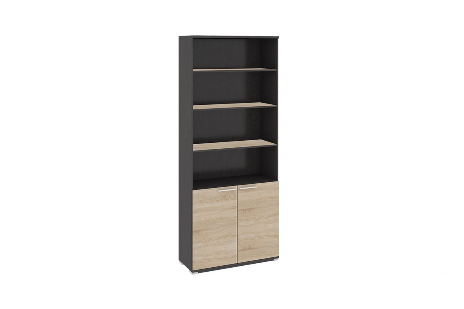 Элегантный цвет каркаса в оттенке венге цаво добавляет изысканности, а пластиковые ножки обеспечивают устойчивость и защиту пола. Наполнение шкафа включает полки из ЛДСП, что позволяет удобно хранить документы и офисные принадлежности. Ниша в верхней части предоставляет дополнительное пространство для размещения книг или декоративных элементов.
