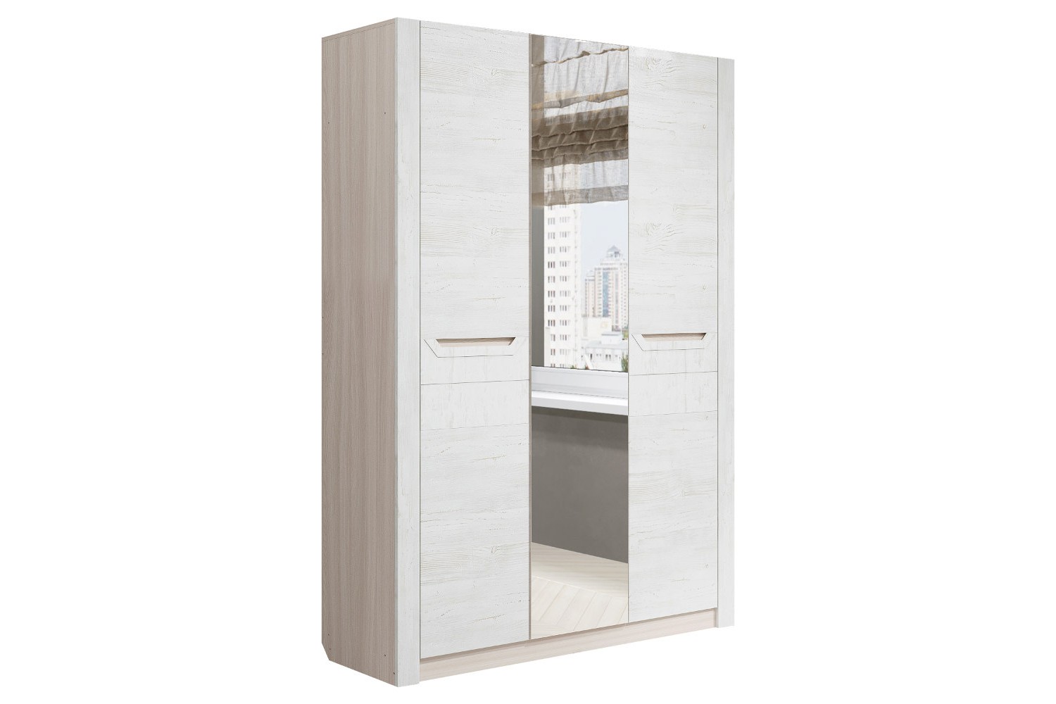 Трехдверный шкаф Ривьера: стиль и функциональность в светлом шимо и дубе Винтенберг