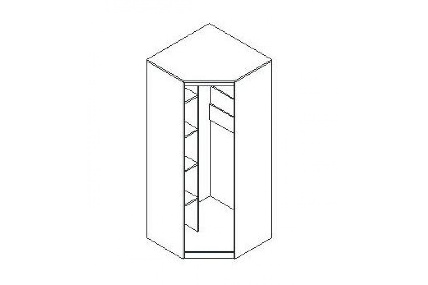 Шкаф состоит из двух отделений: одно предназначено для хранения белья и оснащено четырьмя полками, а другое – для одежды с одной полкой и штангой. Это позволяет удобно разместить все необходимые вещи и поддерживать порядок.
