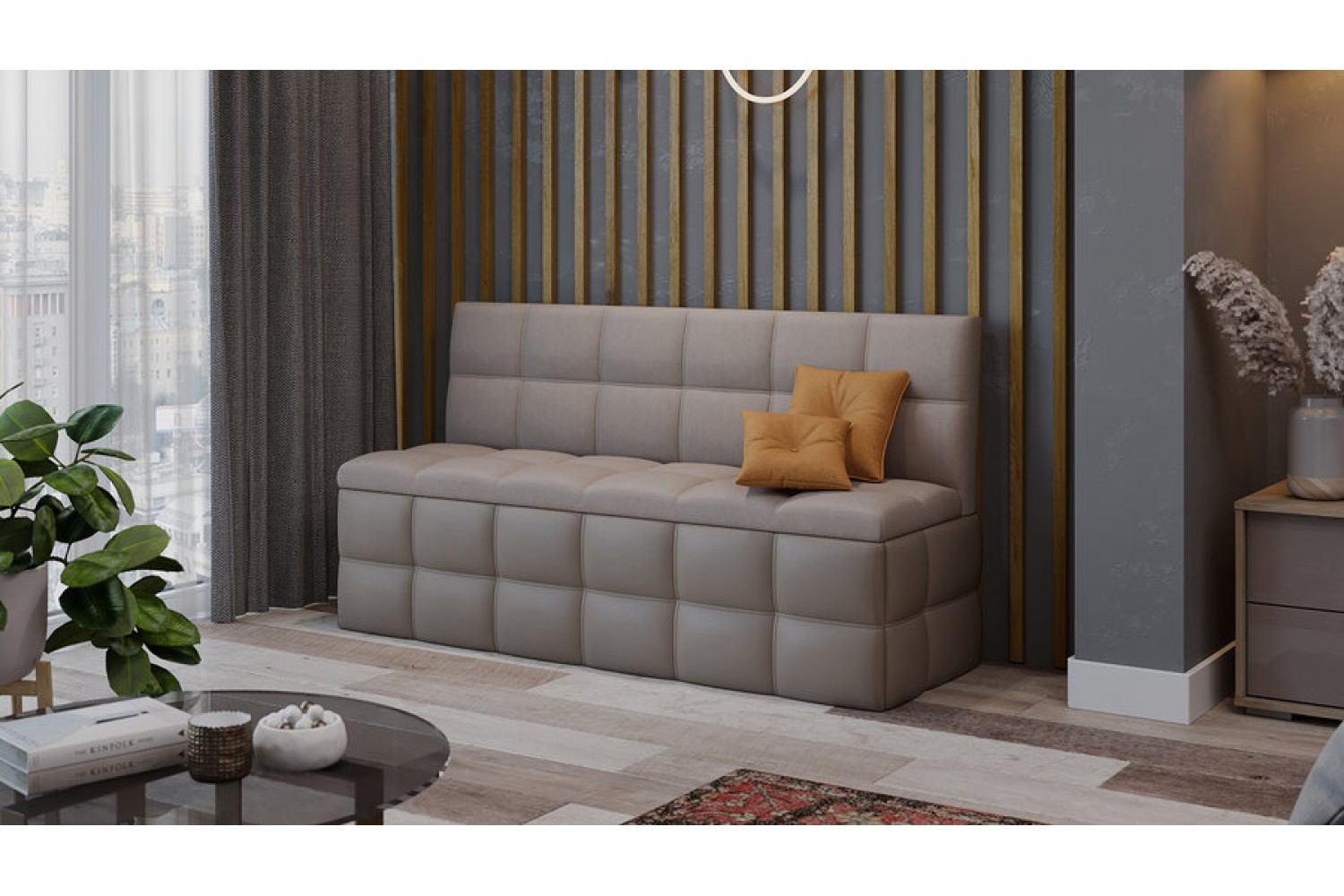 Скамья прямая «Домино» из кожзама и велюра – стиль и комфорт для вашего интерьера
