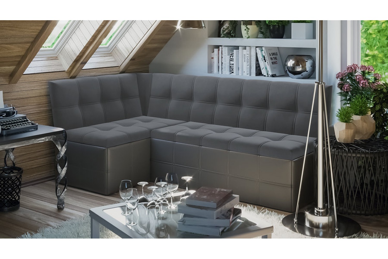 Угловая скамья «Домино» с спальным местом из кожзама и велюра