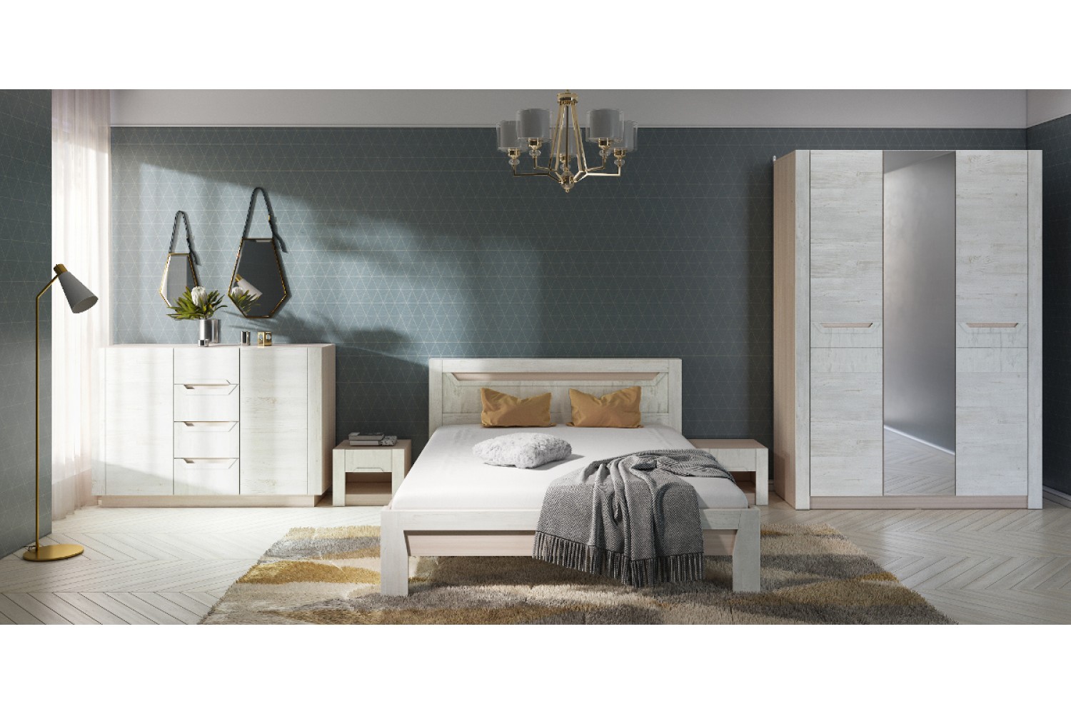 Спальня Ривьера композиция #2: Шимо светлый и дуб Винтенберг для стильного интерьера