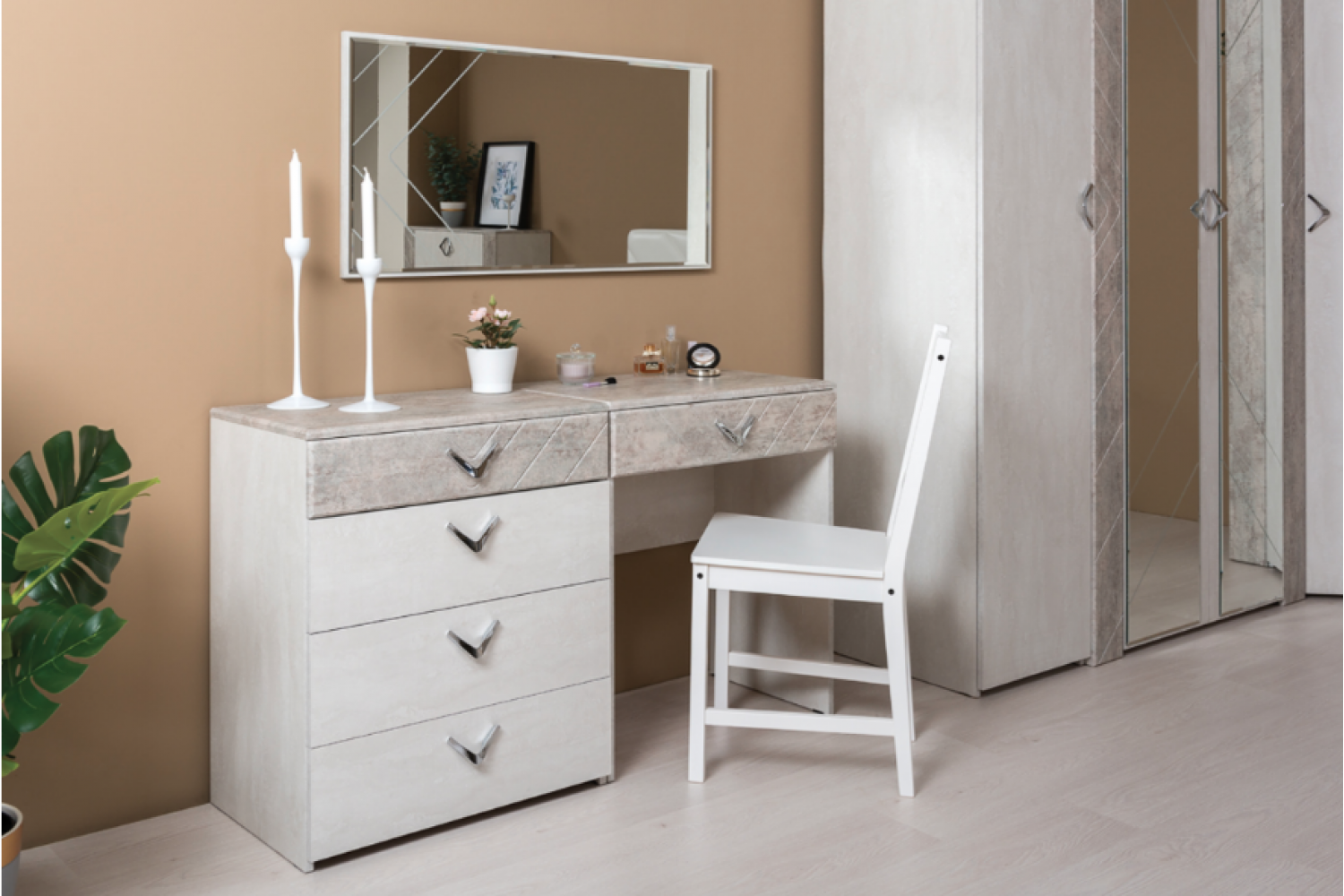 Материалы, использованные в производстве, экологически чистые и долговечные, что гарантирует долгий срок службы гарнитура. Элегантные линии и мягкие оттенки отделки делают гарнитур «Амели» универсальным решением для любого интерьера.