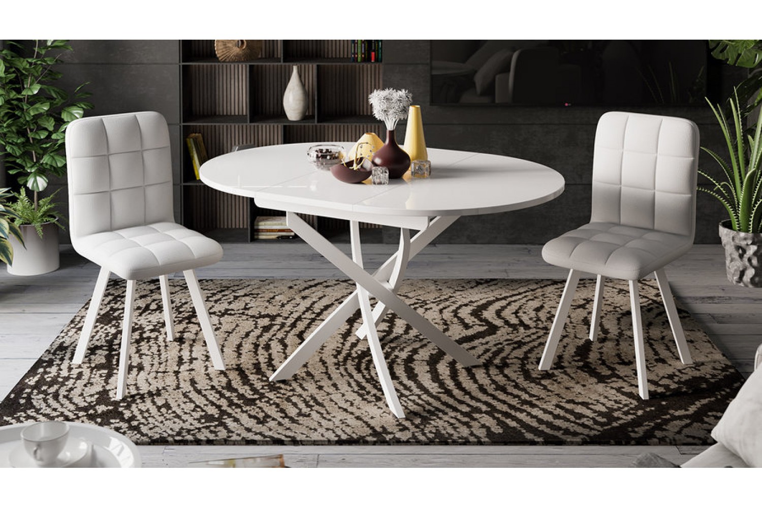 Особенностью модели является наличие механизма раскладки, который позволяет увеличить длину стола до 1380 мм, что делает его идеальным для приема гостей и семейных ужинов. Стол обеденный «Diamond» станет стильным и функциональным акцентом в вашем доме.