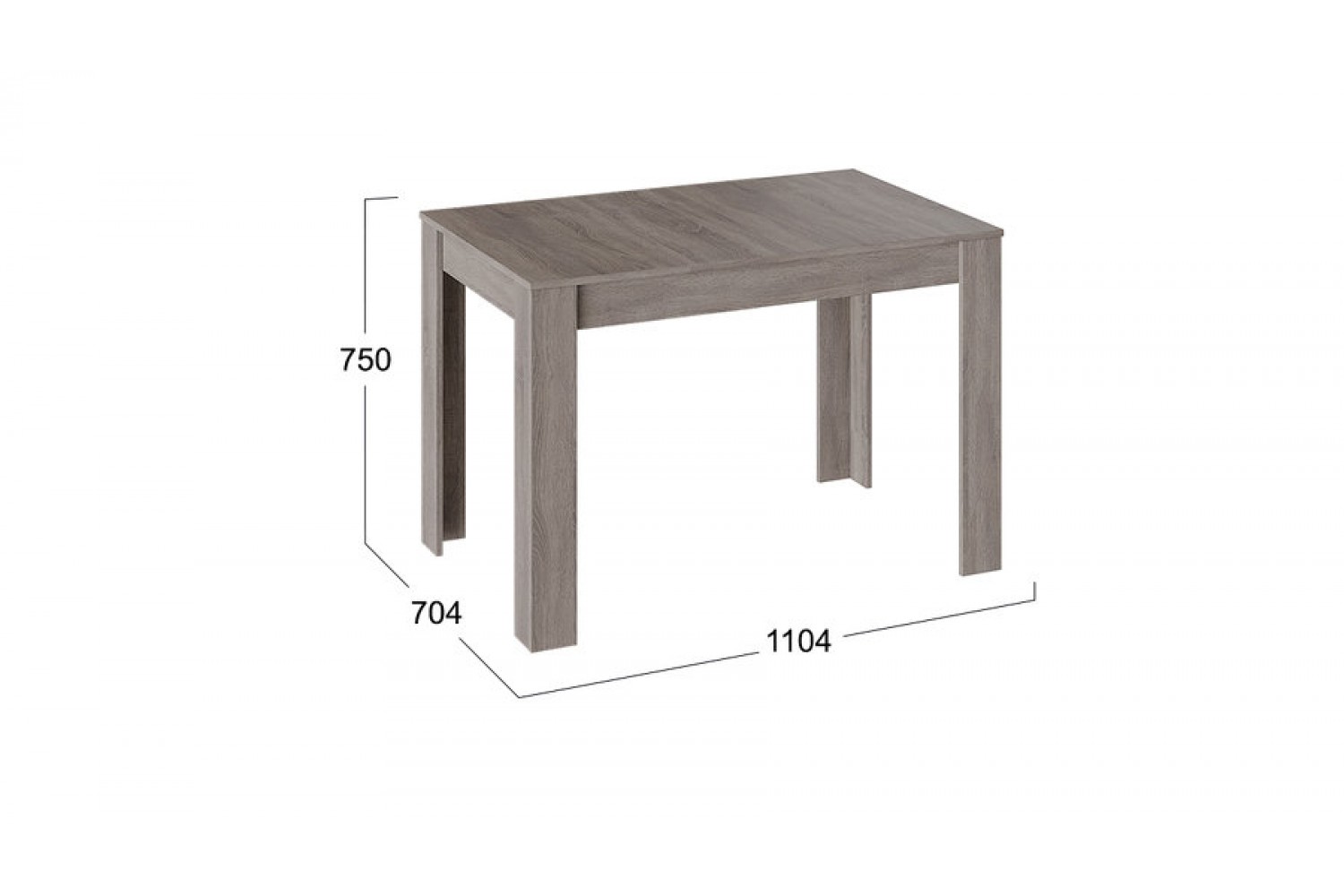 Габариты стола: длина 1104 мм, глубина 704 мм, высота 750 мм, что делает его подходящим для различных пространств. Ножки и опоры выполнены из ЛДСП с кромкой из ПВХ, обеспечивая дополнительную защиту от повреждений и придавая изделию завершённый вид.