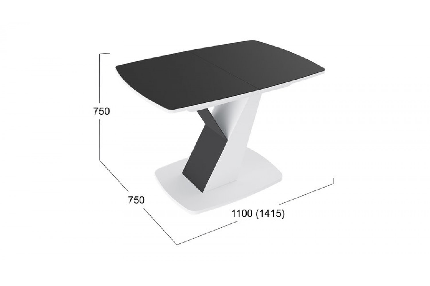 Столешница изготовлена из прочного ЛДСП с закаленным стеклом, что гарантирует долговечность и легкость в уходе. Металлические ножки с кромкой из ПВХ обеспечивают надежность и устойчивость конструкции. Благодаря механизму раскладки, габаритная длина в разложенном виде достигает 1415 мм, что позволяет разместить больше гостей.
